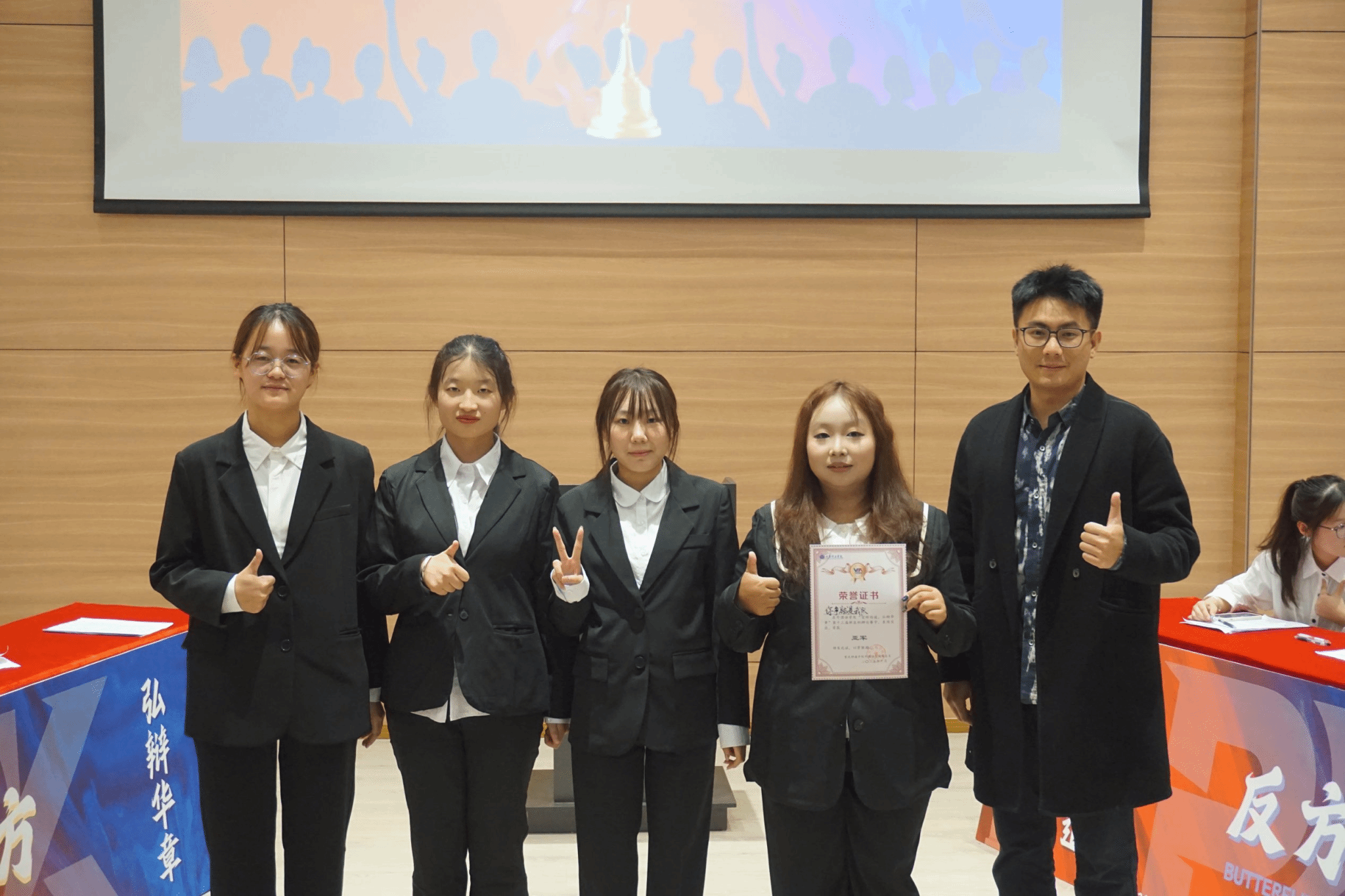 经过激烈角逐与严谨评分——综合评委打分与观众投票,最终Butterflies队凭借总分优势勇夺桂冠,“你争就是我”队荣获亚军,“我最”队获得季军。王贻、武可欣两位同学因其卓越的辩论表现,荣获“最佳辩手”称号。