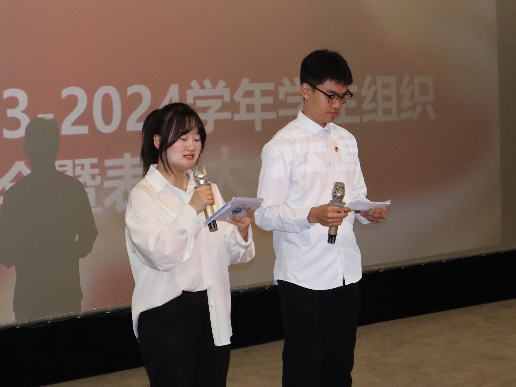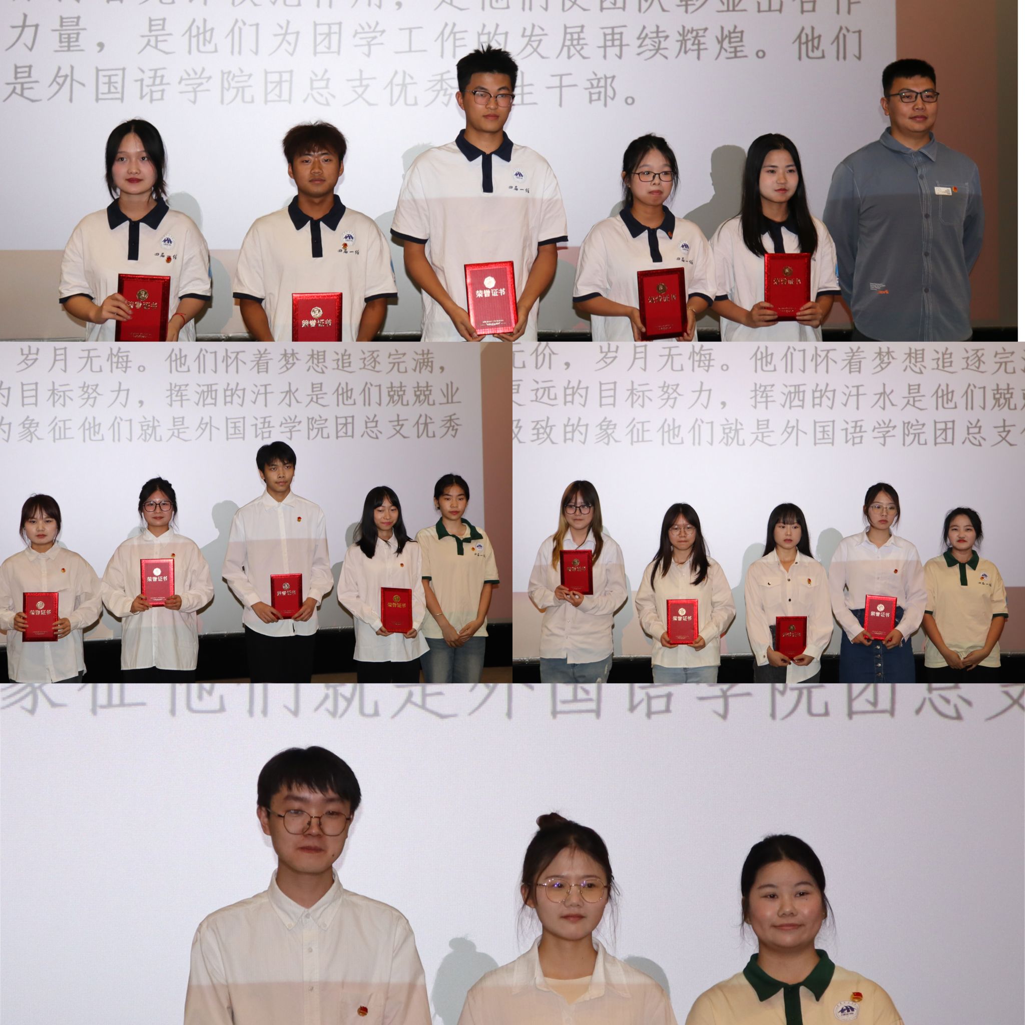 紧接着,由指导老师们和主席团成员为外国语学院第四届第一任学生组织优秀干部干事颁发荣誉证书,表彰他们在过去一年中的杰出贡献。他们的辛勤付出和卓越表现值得肯定。这既是对他们在学院发展道路上取得成就的认可,同时也为曾担任四届一任学生组织干部的干事们送上鼓励,此刻他们将启程,迈向各自光明的前程。