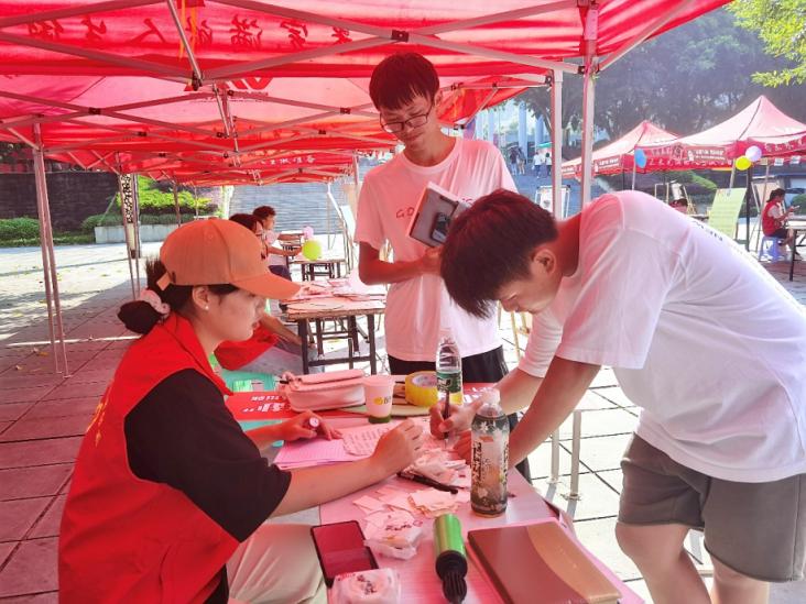 9月23日—24日,在黄桷树广场进行了为期两天的志愿服务专项支队招新。“只要能培一朵花,就不妨做一朵会朽的草。”外国语学院青年志愿者协会的志愿者们不惧烈日,耐心地为前来咨询的同学们详细介绍了外国语学院志愿服务专项支队地信息,大家对丰富多彩的志愿服务活动兴趣浓厚,并踊跃报名。志愿者们还准备了各种有趣的小游戏和同学们一起玩。在奉献的的道路上一路伴随欢声笑语,志愿之路,永不止步!