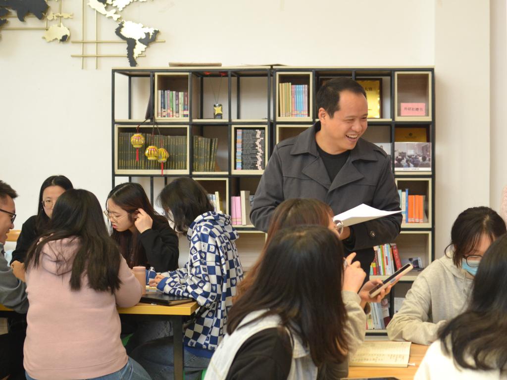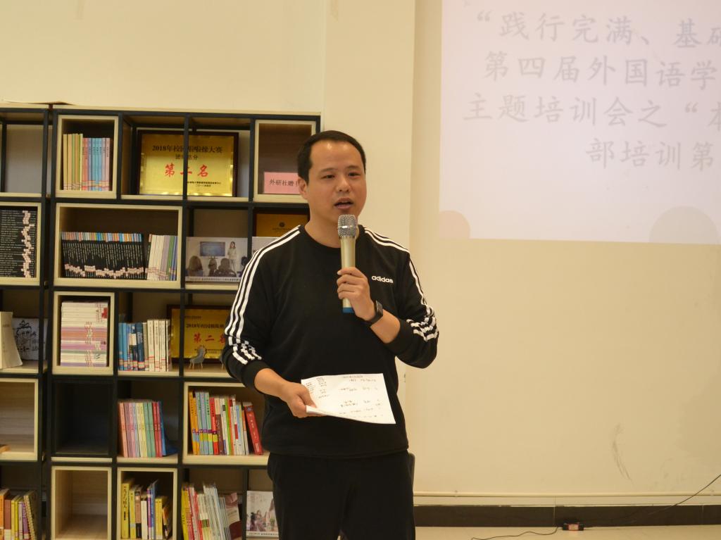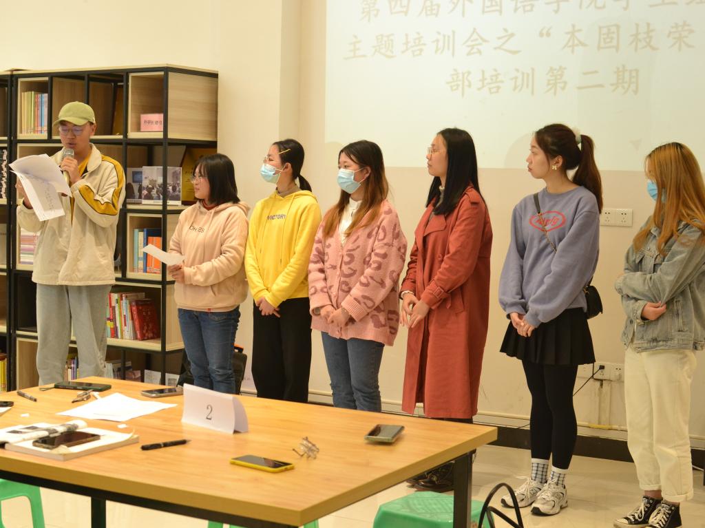 为进一步增加我院学生干部投入完满教育工作的积极性、激发常规工作创造力、提升学生组织凝聚力。2021年10月29日中午12:30,外国语学院学生会办公室在天渠书院阅览室举行了“践行完满,基础专项”——第四届外国语学院学生组织主题培训会。本次培训会邀请到外国语学院副院长祝玮老师作为主讲人,向干部们做完满分享。