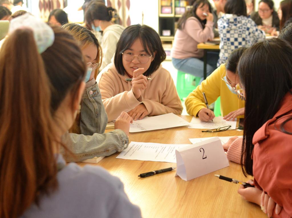 培训第二部分,各小组推选出代表向大家分享各组的活动策划结果。大家创意纷纷,设计出多样丰富的有趣有益活动:新潮的剧本杀团建活动、温暖的志愿服务、增强学生语言能力的营销大赛、锻炼学生身体的组织“舞动青春”广播体操大赛、弘扬中国传统文化的国风大赏活动。