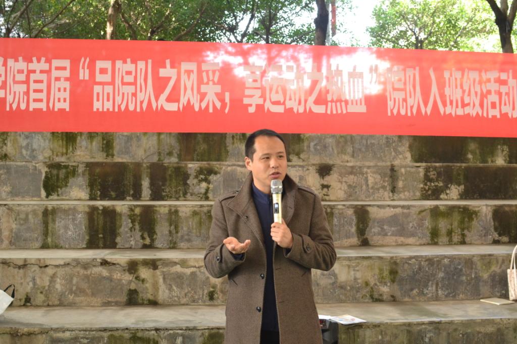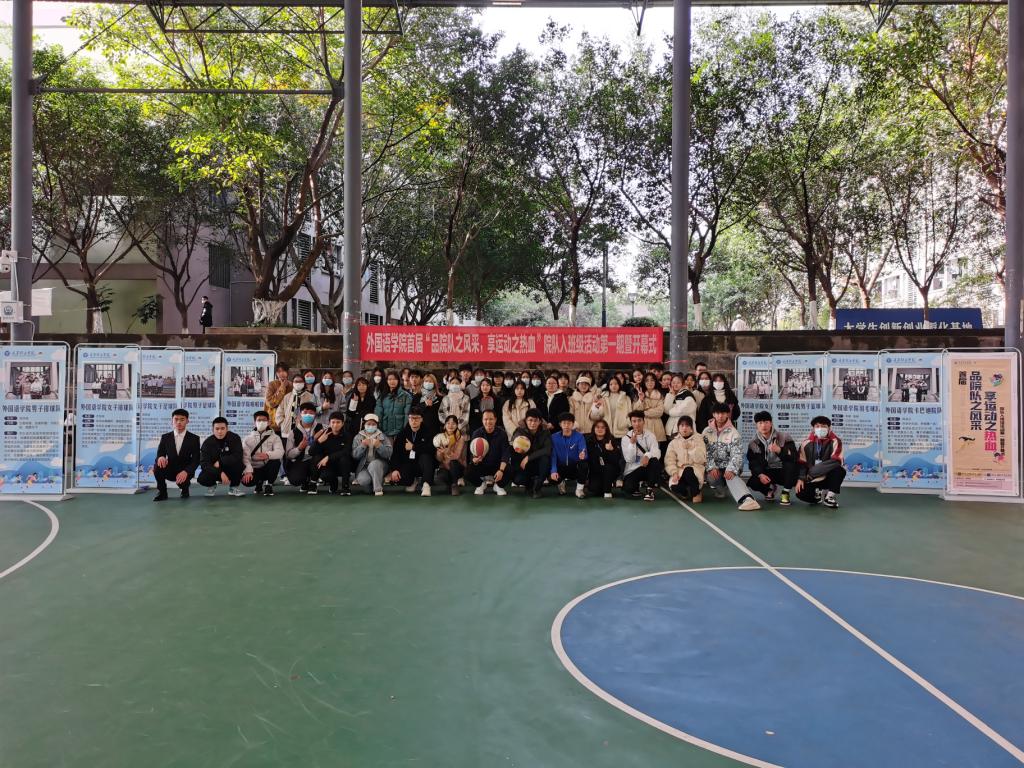 为加强外国语学院竞技体育的精神建设,形成全民运动的体育氛围,进一步规范和优化竞技体育的工作,同时激发同学们对运动的热情,培养良好运动习惯,特此外国语学院于2021年11月22日中午12:10在C区风雨篮球场开展外国语学院首届院队入班级活动第一期暨开幕式。