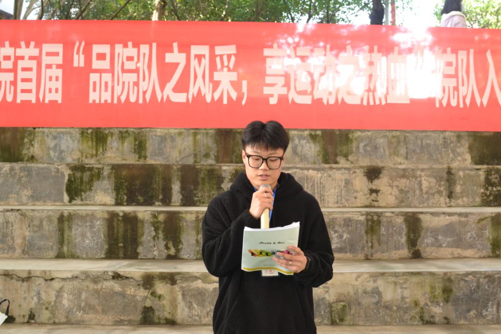 在这个冬意浓浓的季节,几束暖光透过云层洒在风雨球场上,本次活动也在主持人对各院队的的介绍中正式拉开序幕。主持人首先向大家介绍外国语学院各院队的基本情况及团队风采,使同学们对外国语学院各院队形成初步的认识与了解。