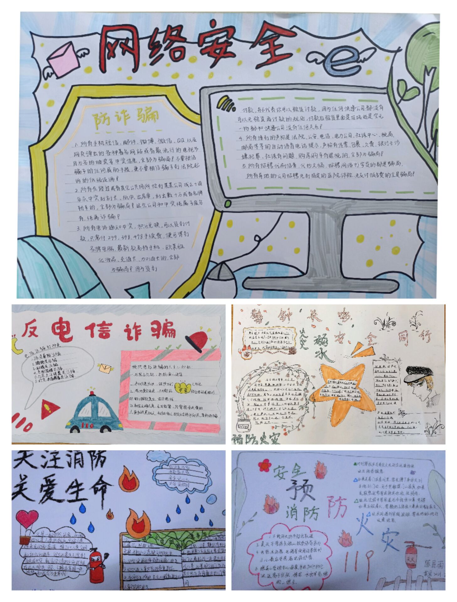 同学们的手抄报设计另辟蹊径,集思广益,以团队形式进行手抄报创作,展示属于团队的智慧。而这一幅幅的手抄报也凝聚了同学们对于安全知识的了解。防范火灾、防诈骗以及安全用电问题一一画出,各类报警电话、注意事项、防范小妙招等都列出来,内容丰富,立意清晰。在展现同学们创意的同时也向我们展现了安全的重要。