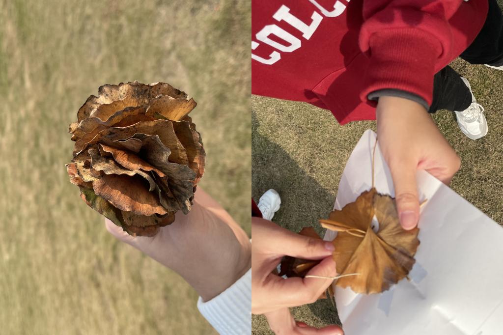 岁月含香,秋水韵长。遍地银杏黄,大家一起拾起秋天的落叶,凭借自己的想法做出创意手工。新颖的思路,耐心的制作,一份手工作品呈现在大家眼前。紧接着,团支书打分后,同学们将自己的手工纷纷送给想送的人,给同学和老师们送去秋天的温暖、美好的祝福。通过拾树叶的形式传达出保护环境的责任意识,提高大家的坏境素养。