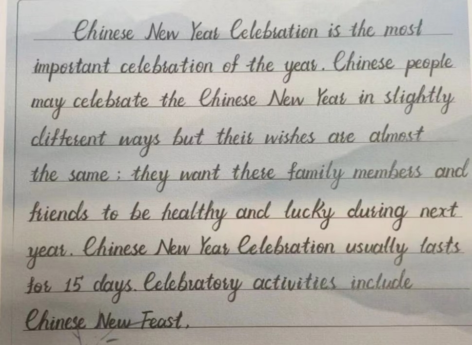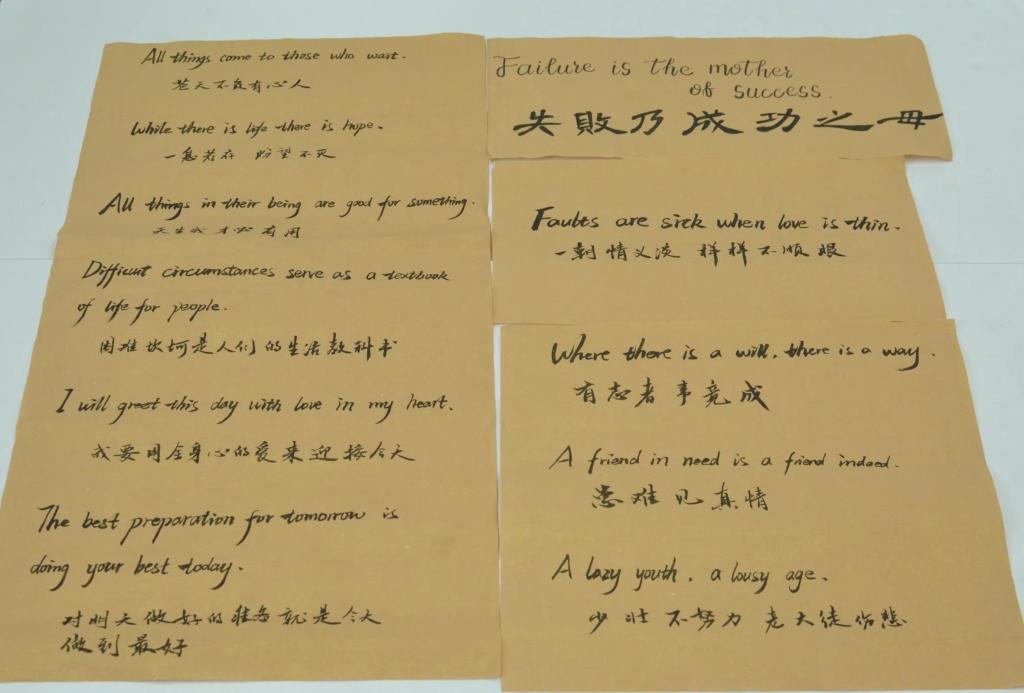 活动结束后,同学们的一撇一捺实在是让人印象深刻,参与本次活动的同学也表示收获颇多。其中有一位同学说道:“这次书法活动确实很有趣,我读到了许多没有读过的书籍片段,这让我有了继续读下去的好奇心。”又有一位同学说:“通过这次活动,我深刻地了解到自己的书写能力相比其他人而言太差了,我还需要多加练习!这也是为我将来步入社会增加一项技能嘛”。还有同学表示:“非常喜欢这项活动!它能让我们在繁忙的生活中沉下心来练习英语书法、陶冶情操,也是一件好事啊。”