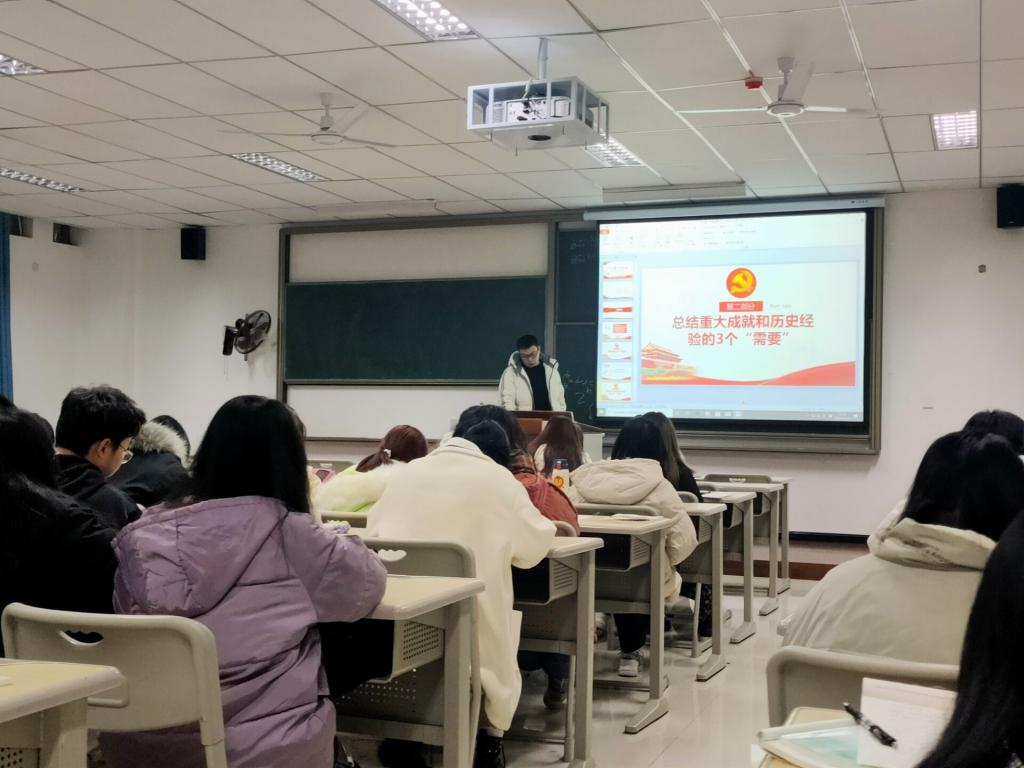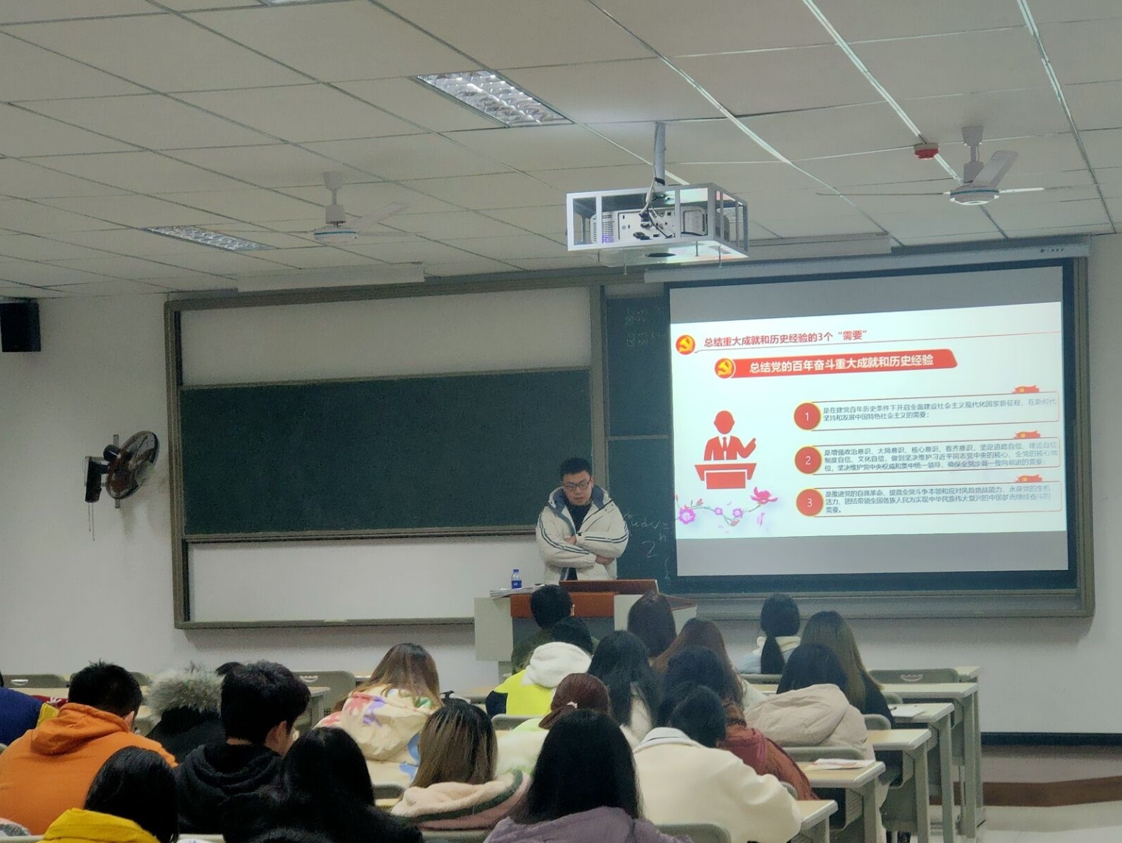 为加强十九届六中全会理论学习,提升学生们的政治思想素养。特外国语学院分别于2021年12月25日和12月27日,在天渠玻璃房与第九教学楼教室开展“风起帆扬,逐梦远航”外国语学院十九届六中全会主题学习。外国语学院团总支书记吕戈老师和外国语学院辅导员纪治阳老师主持本次学习。外国语学院三届三任全体干部干事参加本次学习。