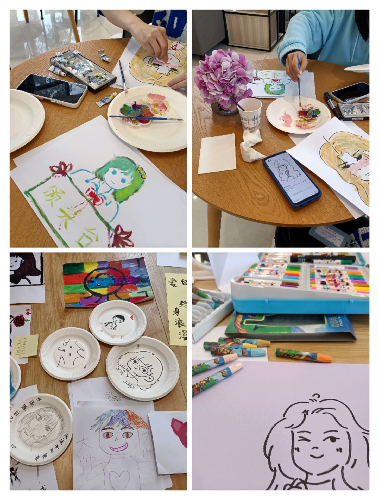 妙笔生花,以一支笔画出独一无二的自己。本次活动通过纸笔还有色彩绘画出自己或理想中的肖像;可一人一组或两人一组,观察自己或对方,画出你看到的或心目中的模样。绘画结束,写下对自己或对对方想说的话;可选择性写下一封信,送给过去、未来的自己。在进行画画创作的过程中,同学们发挥自己的想象力,以简笔画、动漫等形式,画出自己的风采;同时,大家写下的话语充满少女心思,或怀着对未来的期待,或体现自己的人生格言,每一句话都是同学们自己的展望。