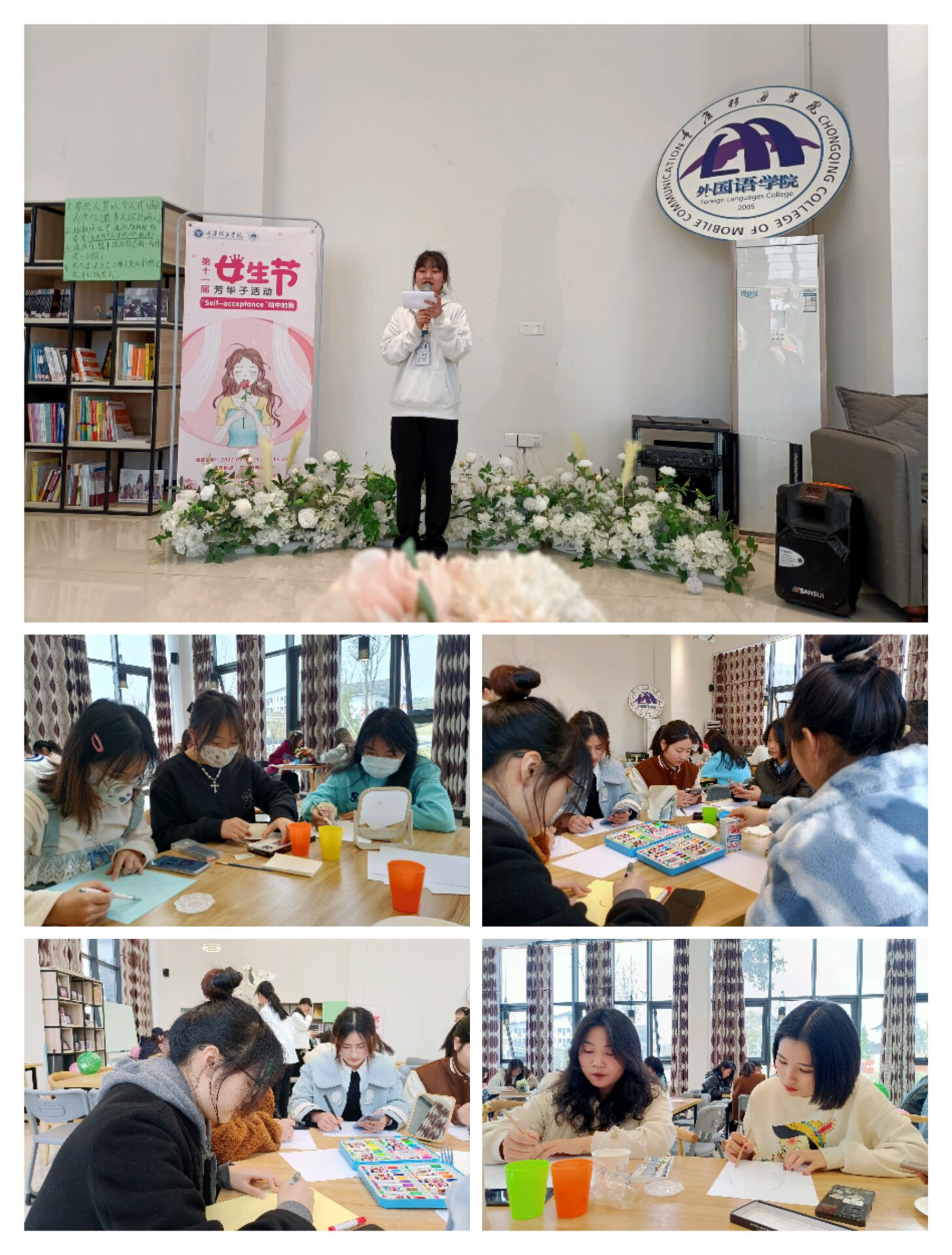 为了全面活跃学子的校园文化生活,展现当代女大学生朝气蓬勃,智慧和青春的风采。2022年3月6日由移通学院校学生会女生部主办,外国语学院学生会权益部组织的“与时代共振,展女生芳华”女生节子活动顺利开展,此次活动对象面向全体移通学子,以三七“女生节子活动‘Self-acceptance’画中的我”为主题画出理想中的自己。