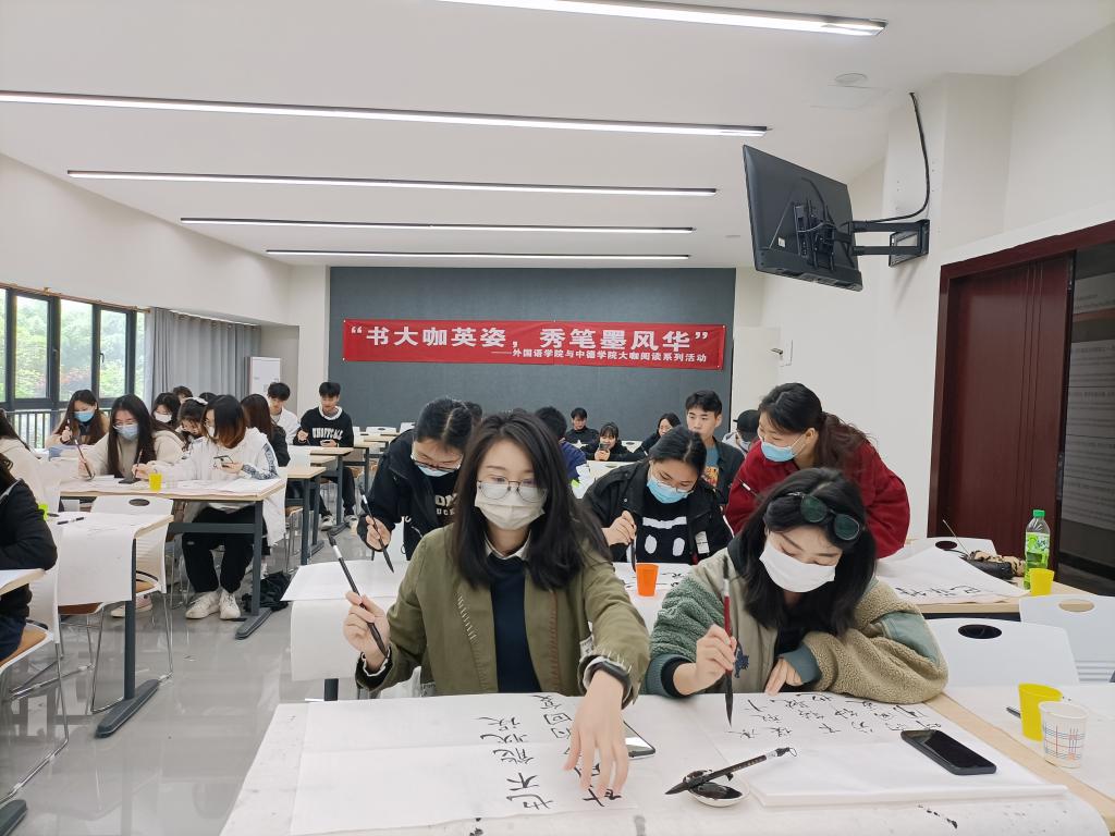 行楷隶篆见功夫,墨香满园耀夜空。为了培养学生热爱书法,刻苦练习的精神,丰富学生课余文化生活,同时进一步推进“信息产业大咖传记”阅读计划,紧扣阅读计划的育人价值定位和科学运作,4月17日,由外国语学院学生会权益部、德国工程学院团总支书院服务部以及书法与美术协会联合举办的“书大咖英姿,秀笔墨风华”书法活动,在南湖智慧教室顺利开展。