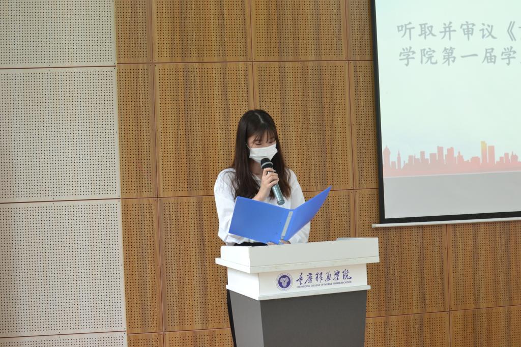 会议第三项,听取并审议《重庆移通学院外国语学院第一届学生委员会工作报告》。报告中对第一次学代会以来的工作进行回顾和汇报总结,并肯定我院围绕完满教育全民化、基层化一年来的工作成果。同时报告中指出外国语学院学生会未来两年将切实加强思想政治引领,深入开展社会主义核心价值观教育;坚定推进学生权益工作,始终代表和维护广大同学的合法权益。