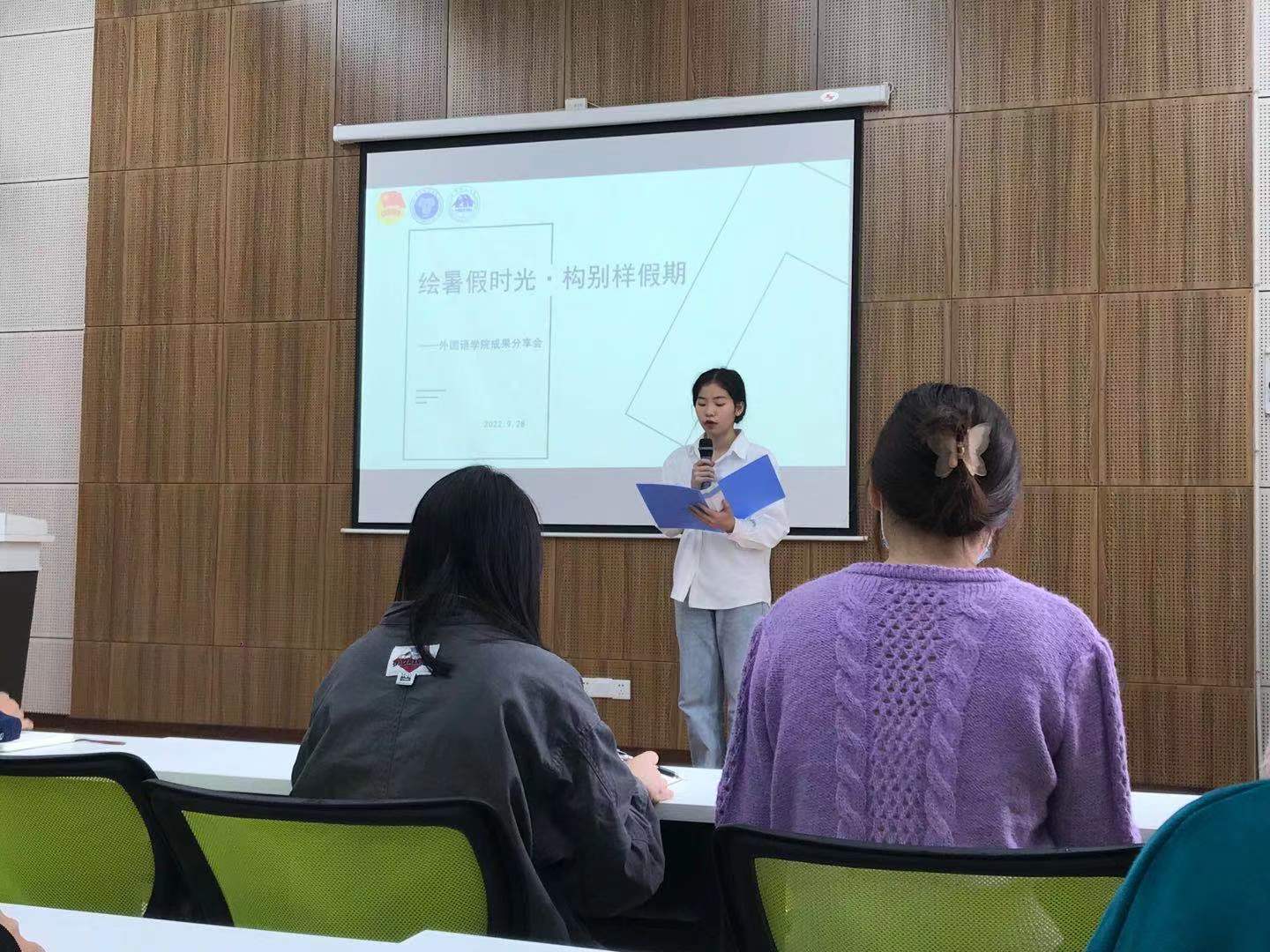 在白驹过隙间,暑假已经悄悄溜走了,新的学期如期而至。新学期,一段航程即将开始;新的学期,应当忘记烦恼,启程明天;新的学期,应该奔向未来。为让外国语学院学生组织各干部们在共享假期趣事的同时逐渐找回学习与工作的状态,特外国语学院团总支于9月28日中午12:20,在天渠111报告厅举办“绘暑假时光·构别样假期”外国语学院第三届第四任学生组织假期成果分享会。