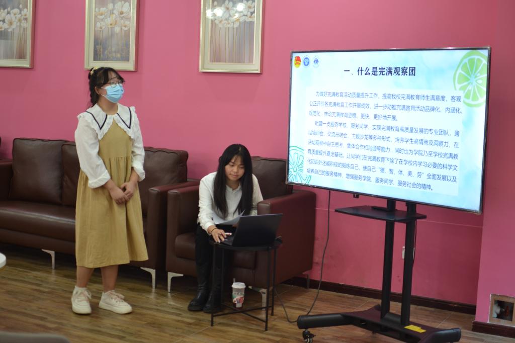 会议伊始,观察团成员的自我介绍活跃了现场氛围。紧接着外国语学院Starlight完满观察团团长黄建对观察团进行了介绍。团长介绍到完满观察团是一支服务学校、服务同学、实现完满教育高质量发展的专业团队。在培养学生高情商及洞察力的同时,也要求观察团成员拥有自主思考、集体合作和沟通等能力。团长提出,各成员们要尽快适应并且熟悉新工作新环境,要加强成员与成员之间的沟通交流,以便后续观察工作的展开。