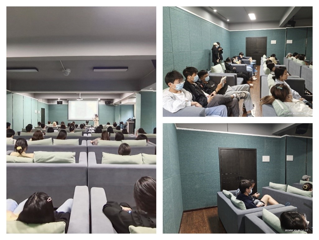 2022年10月21日14:00,外国语学院举办英语专四、专八讲座。此次讲座分为线上线下同时进行,主会场于爱莲多功能影音室,分会场于天渠104,105,106三个教室。我们有幸邀请到外国语学院黄艳老师来与同学们讲解十月底即将迎来的专四和以后三月上旬的专八考试技巧和注意事项。针对专四、专八题型和语法考点,黄老师讲授了语法知识,讲解了历年真题,也同时提供了做题方法,例如充分利用自身闲暇时间集中突击,使用备考日记填补自身的薄弱知识点,同时根据自身需求利用好互联网技术进行视频学习,用音乐缓解自身的压力等,以此发挥自己的最大实力。