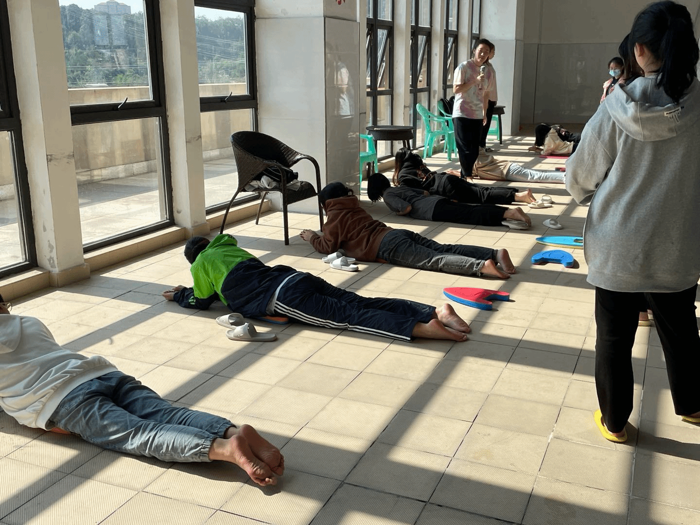 活动初始,王钰涵老师对基础游泳知识、正确佩戴泳具进行了讲解。在热身阶段,岸上的同学,排成列队,积极参与热身运动,为跃入自由之洋时刻准备着。在保证同学们安全的情况下,老师还现场与队员合作进行游泳动作展示,同学们的眼神中充满了期待。