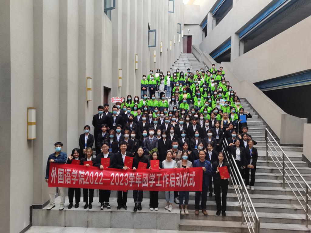 “百舸争流,奋楫者先”,外国语学院三届四任学生组织奋斗正当时,迈向新征程,为外国语学院的完满旅途的发展贡献着自己的力量。为增强各学生组织之间的了解,提升责任感与认同感,外国语学院团总支于11月2日下午14:00,在9108教室和9109教室举行“踵事增华·踔厉奋发”外国语学院2022—2023学年团学工作启动仪式。莅临本次大会的嘉宾有外国语学院副院长祝玮老师,外国语学院团总支书记吕戈老师,校团委杨婕老师和外国语学院学工办全体辅导员老师。
