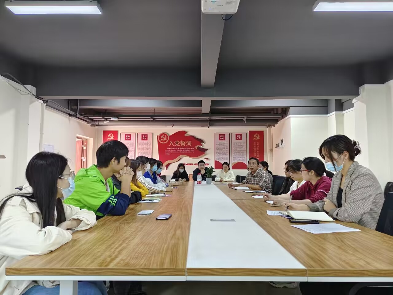 岁月不居,时节如流。距离开学到现在,同学们已经在校度过了两个多月。学生在两个月的学习和发展中,也遇到了一些问题和困惑。为帮助同学们解决问题,同时检查教学成果,提升教学质量,2022年11月2日,外国语学院特此进行期中教学检查暨院长座谈会。参与本次座谈会的人员有外国语学院院长吴世银老师、教学副院长罗琳老师、各专业课任课老师:王萍老师、李雨倩老师、唐怡老师、王晗老师、李梦雅老师、外国语学院2021级辅导员屠建丽老师以及各年级学生代表。