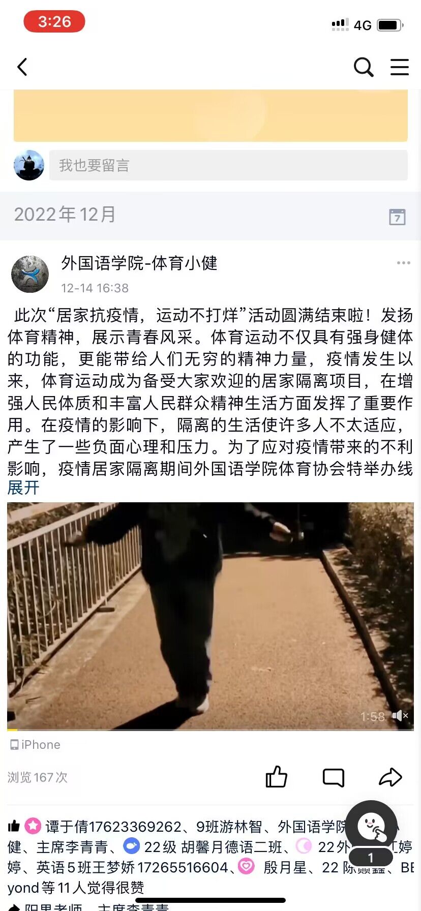 【竞技体育】“疫情终结束,运动永不停”外国语学院线上运动视频打卡活动顺利举办