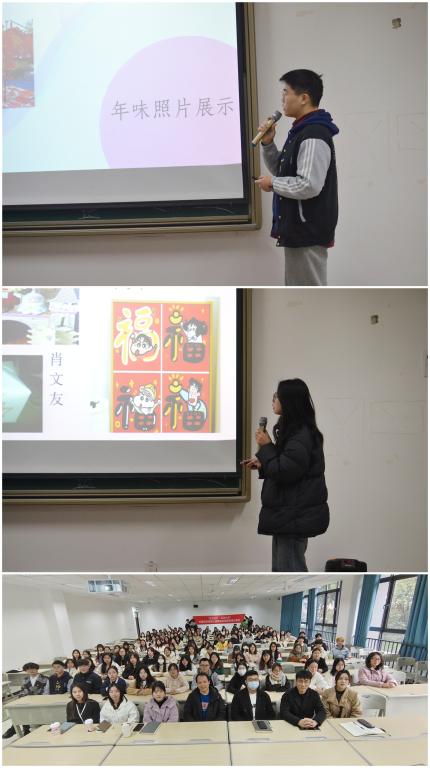 2023年3月1日中午12:30,外国语学院团总支在第九教学楼101教室顺利举行“欣果斐然·同至共享”外国语学院第三届第四任学生组织假期成果分享会。各部门代表将自己部门的假期成果展示在大家眼前,升空的烟花、美满的团年饭、充满年味的手工作品、对情商书籍阅读的感想,这些点点滴滴让我们对2022的春节充满难忘的回忆,让我们在迎接新春的到来的同时也展现对生活的热爱。希望通过本次活动,能让大家在共享假期趣事的同时也帮助干部干事们走出自己的假期“舒适圈”、调整好自己的状态、平衡学习与工作,以自己崭新的一面迎接2023的到来。