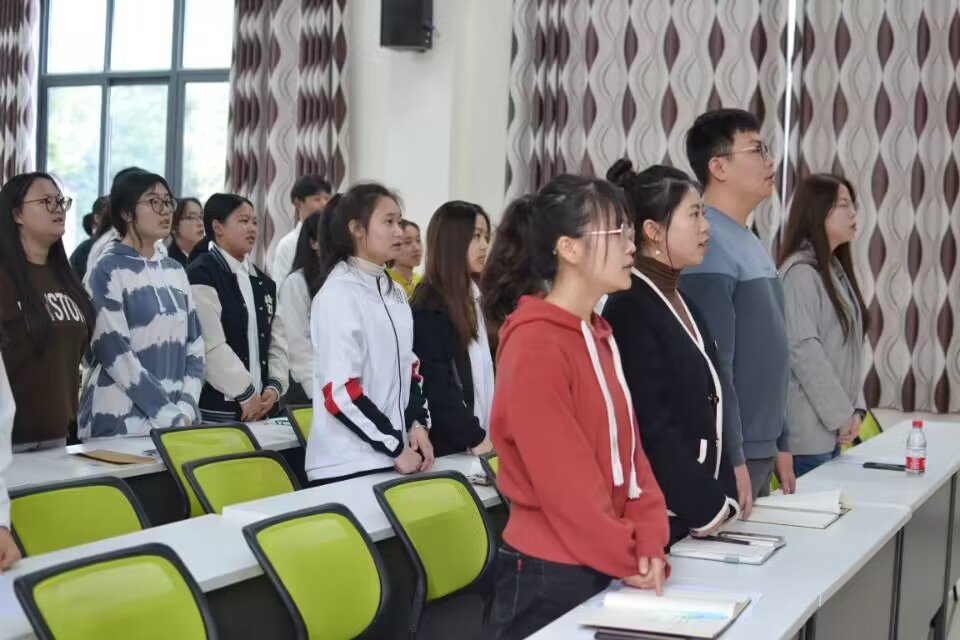 培训在庄严肃穆的团歌中开始,参加青马工程的同学们全体起立,共唱团歌。在熟悉而又郑重的歌声里,我们开启了外国语学院第五期青马工程初阶班下半期的新篇章。
