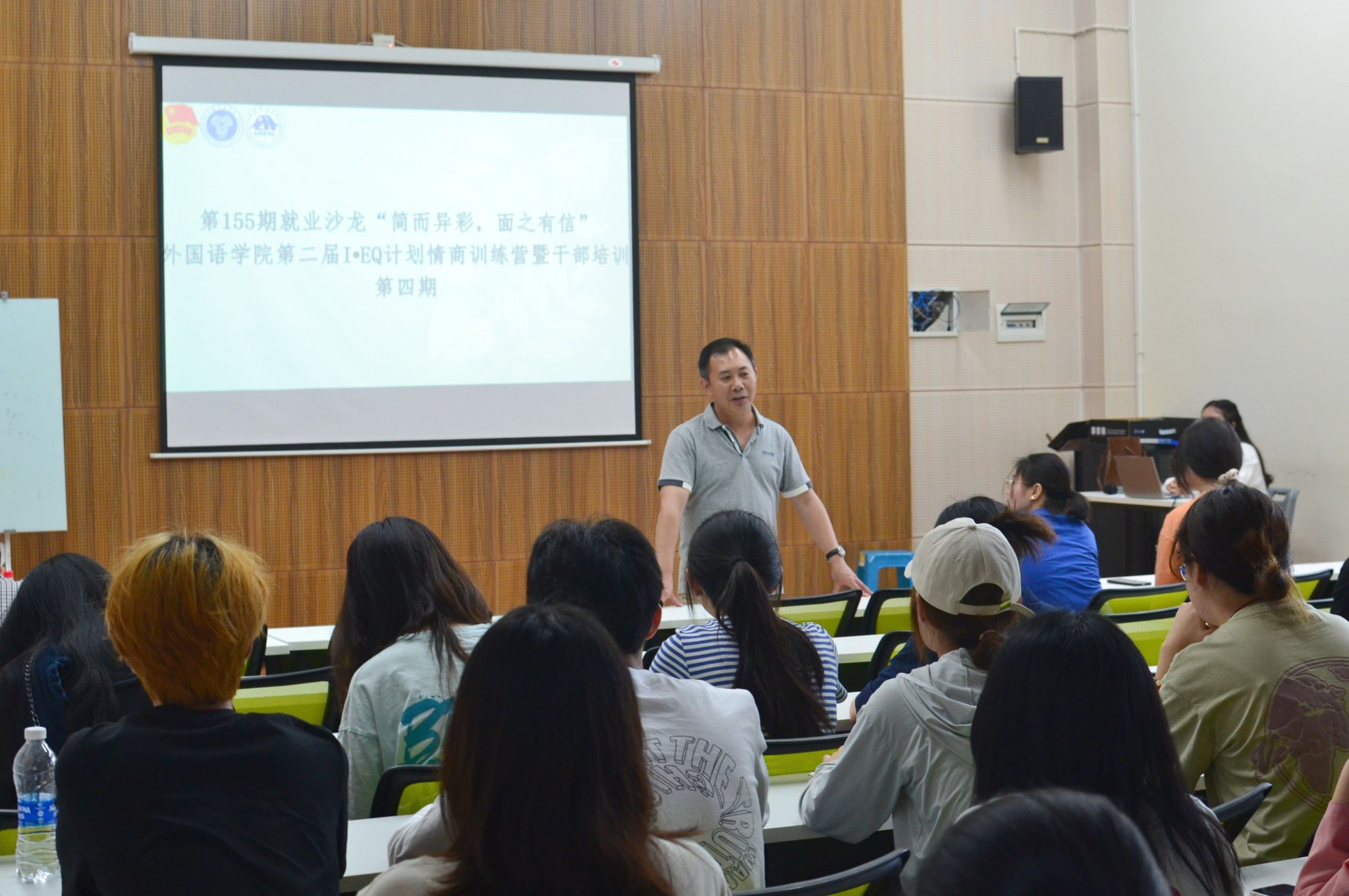 职场是我们步入社会的有第一个大关,如何在职场中如鱼得水?如何得到HR的青睐?这都需要一份完美简历的支撑,为帮助大家升华对简历的认知、提升简历制作的技巧,特外国语学院团总支于4月19日,在天渠111报告厅开展第155期“简而异彩·面之有信”外国语学院第二届I·EQ计划情商训练营活动暨干部培训第四期。本次情商训练营有幸邀请到优秀指导老师王欣老师作为主讲师。外国语学院第三届第四任全体干部及其他同学参与本次活动。