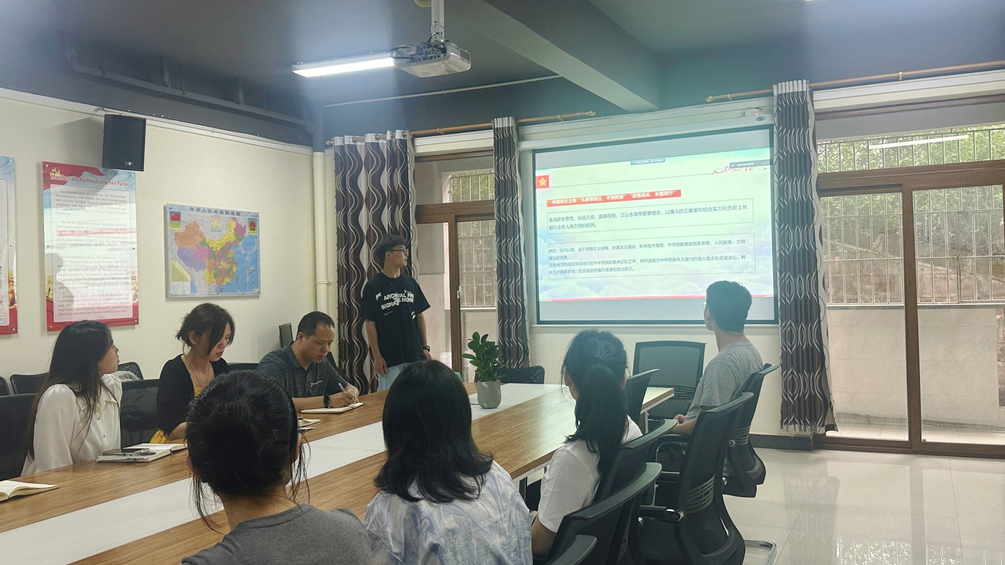 世界百年未有之大变局正加速演进,中华民族伟大复兴的历史进程不可逆转。为学深悟透全国两会精神,全面凝聚实干奋进力量,进一步深入学习贯彻习近平新时代中国特色社会主义思想,贯彻党的二十大精神,外国语学院学生党支部于2023年4月21日在荷悦112会议室开展了主题党日活动,本次会议由屠建丽同志主持,外国语学院学生党支部教师党员、部分在校学生党员参与本次会议。