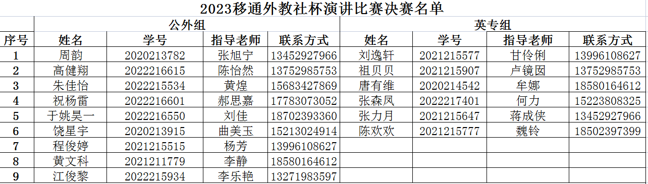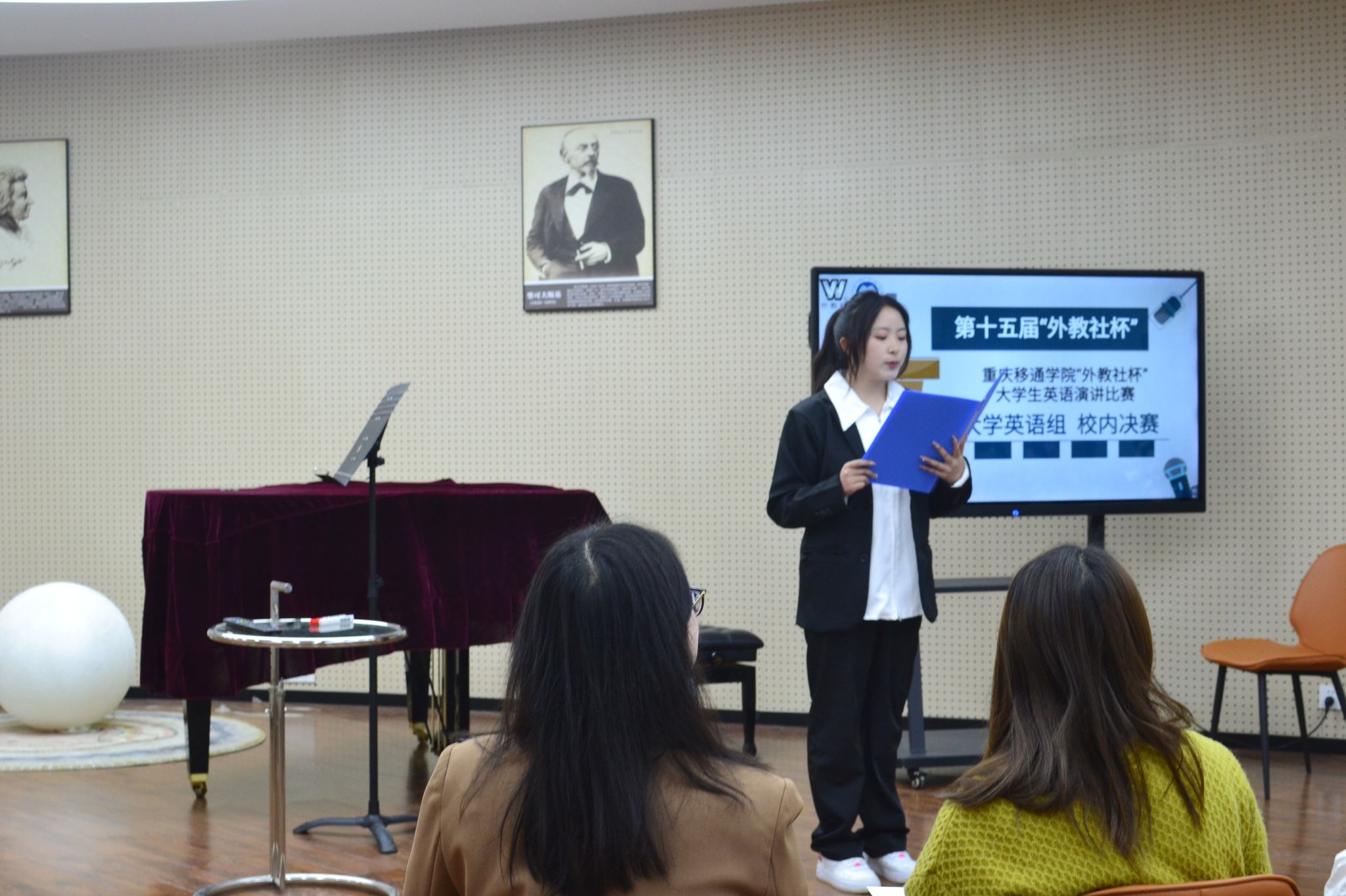 2023年4月21日晚上七点,第十五届“外教社”杯重庆市民办本科高校独立学院大学生英语演讲比赛重庆移通学院校内选拔赛初赛,于天渠108教室完满举行。本次初赛共计33人参加,在活动中同学们镇定自若,自信大方,在赛场上展现自我,突破自我。生动形象展现当代青年学子勤学好战风采。经过层层选拔,此次比赛最终有18位选手成功晋级决赛,包括大学英语组12人,英语专业组6人。