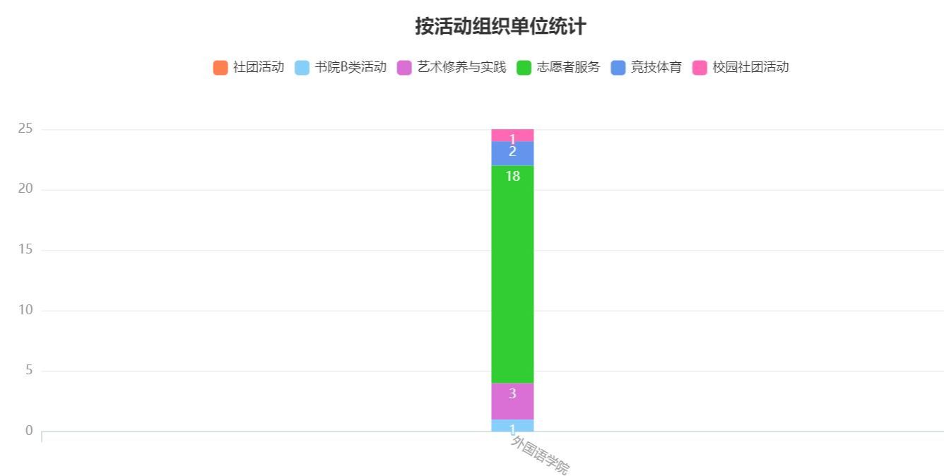 蹴就着四月滚烫的完满教育,外国语学院的数据分析也实时更新。外国语学院共推出23场完满教育特色活动,其中校园社团活动5场,艺术修养与实践1场,志愿者服务15场,竞技体育2场,覆盖人数约6604人次,活动平均人数约330人次。外国语学院四月数据分析报告如下: