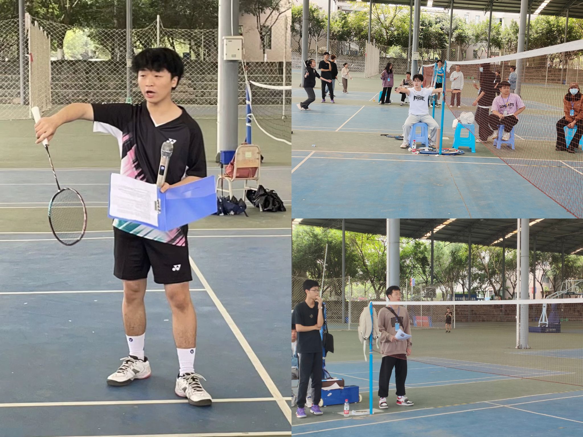 科学的指导是取得胜利的不二法门,羽毛球是连接体育协会与校羽毛球协会的一个纽带,借此机会,两协会之间进行联动交流。在赛前邀请校羽毛球协会的会长开展了赛前培训会,并且校羽毛球协会为本次活动提供裁判保障,培训会上共同商讨打磨比赛规则,积极为本次比赛出谋划策,共同筹划举办本次活动,为本次比赛的举办做好充足准备,给参赛人员带来更好的比赛体验并保证更好的公平性。专业与业余爱好的结合,使得本次比赛精彩纷呈。校羽毛球协会还带来了精彩的开场秀,并展示了正确发球、迎球、接球、扣球姿势。振奋人心,现场热情澎湃,为本次比赛锦上添花。来自强者的鼓舞、竞争者的认真相待以及工作人员的公平负责都展现出竞技体育的温情、友情。