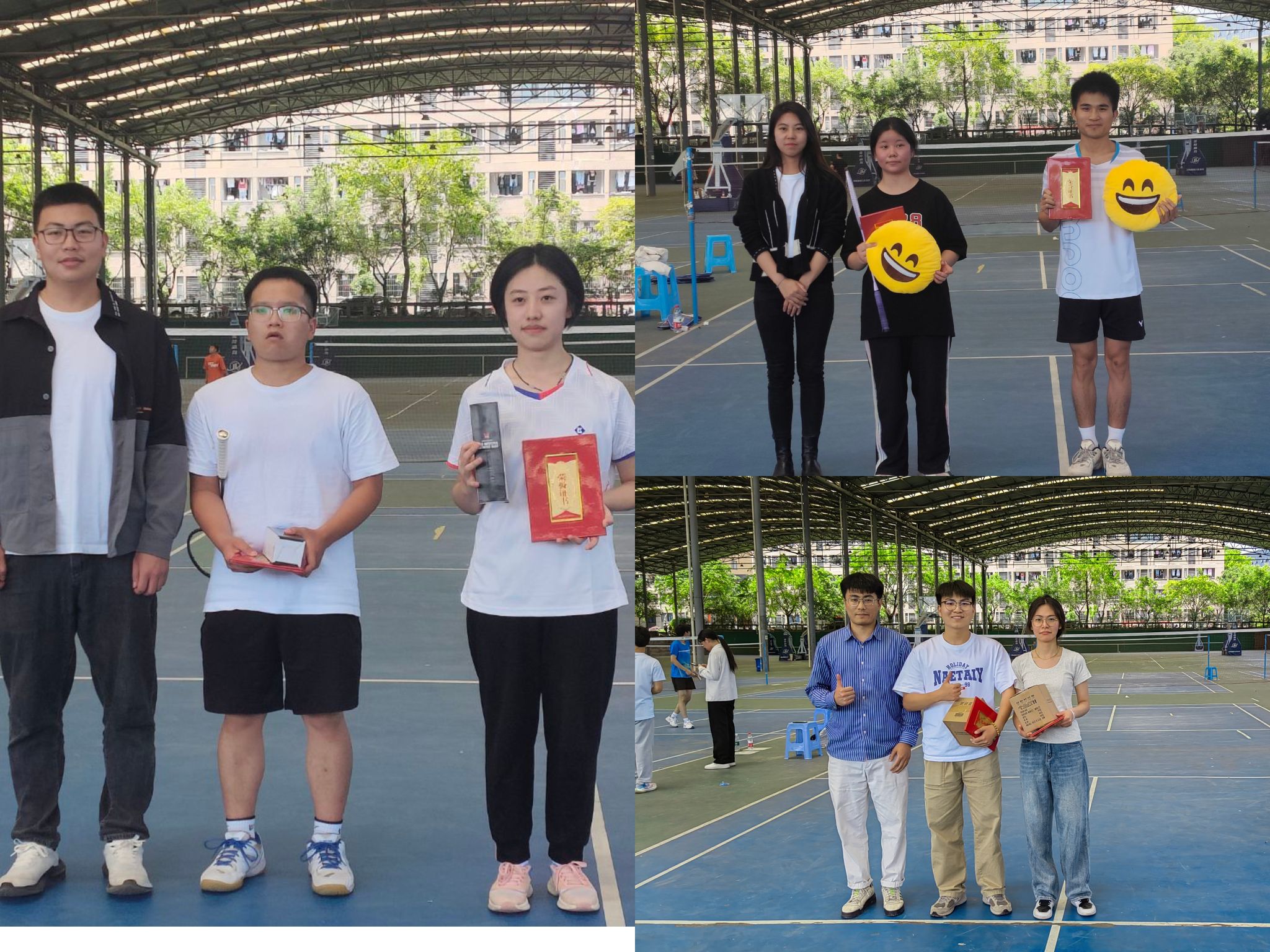 球网相隔,羽毛飞跃,你来我往,球拍挥扬。经过激烈的角逐,最后决出18人进入决赛,比赛进入了高潮,这是属于强者之间的较量,让人叹为观止。本次羽毛球决赛可谓是一场精彩的争夺战。选手们在赛场上你来我往,不断地斗智斗力,引得现场观众掌声不断。其中高超技巧和精湛体让我们叹为观止,让我们感受到了选手们的拼搏精神和热血青春。比赛一波三折,胜利永远是来之不易。在这场充满着才华和困难的羽毛球决赛中,选手们表现非凡,既展现出他们的坚定和毅力,又呈现出艺术般的技巧与美感,他们用手中的羽毛球演绎出了一场场精彩绝伦、感人至深的人生大戏!经过数个回合的对抗,最终决出了男子、女子前三名。羽毛球随着同学们的挥打,在空中来回飞舞,传递着同学们的激情,带给同学们竞技精神,共享竞技快乐。