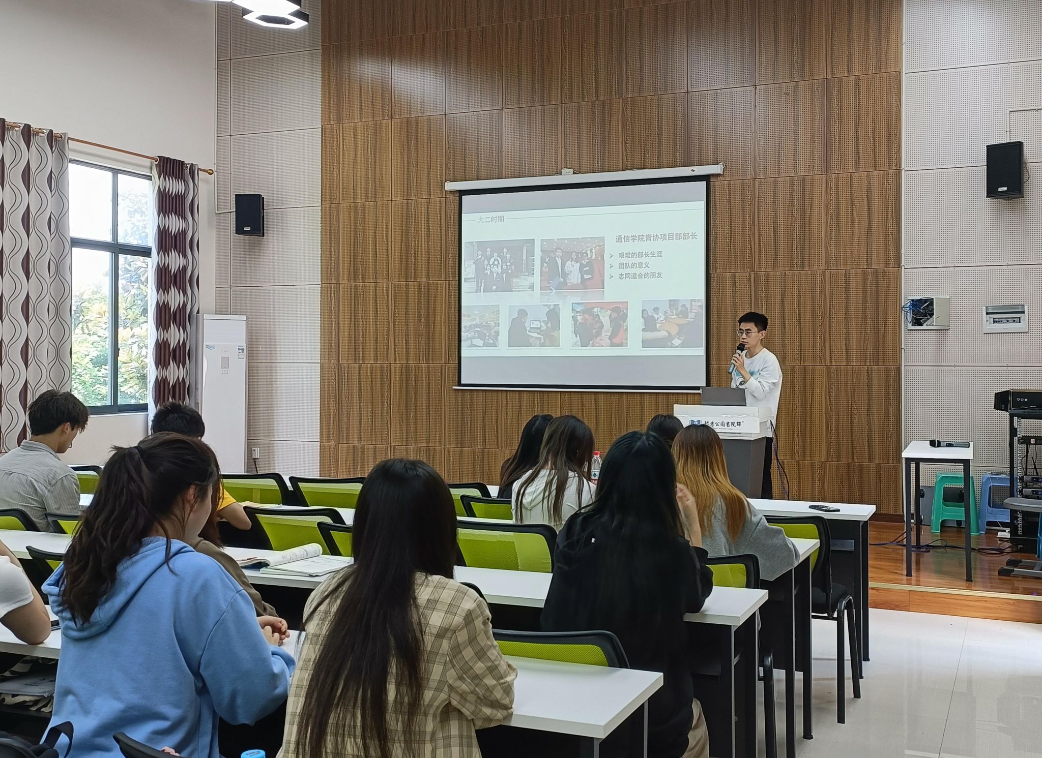 “谢却海棠飞尽絮,困人天气日初长。”为了让同学们能够更好地贯彻志愿精神,领略志愿意义。外国语学院调研部特于2023年5月11日中午12:30在天渠报告厅顺利举行“志愿于心,用爱践行”外国语学院第十季“你好•达人”主题宣讲活动,有幸请来了2020级通信与信息工程学院优秀学长冉涛。