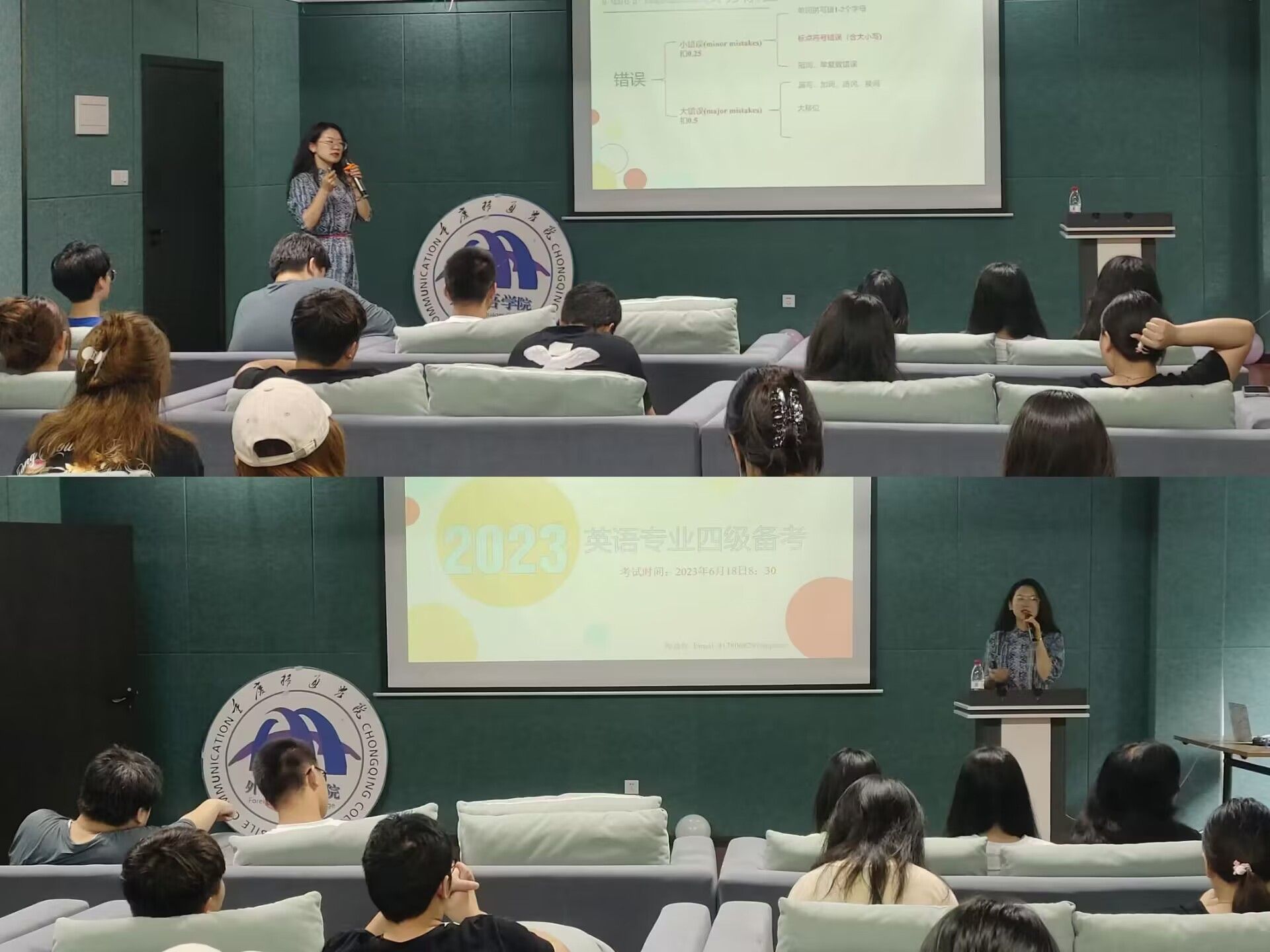 2023年5月19日14:00外国语学院权益部在爱莲书院举办英语专业四级讲座,并邀请到外国语学院帅易琼老师来与同学们讲解六月份即将到来的英语专业四级考试的注意事项。帅老师从题型、答题卡、备考上为同学们分析,特别在时间的把握上传授了一些做题方法和经验。例如充分利用自身闲暇时间集中突击,复习自己的错题本,练听力应从真题和模考题入手,注意一些专业术语的表达等。外国语学院通过定期开展此类讲座来提醒学生语言学习的方式和方法、应对此类考试的技巧、考试规则以及违反考试纪律的严重后果等,并督促同学们继续负重前行!