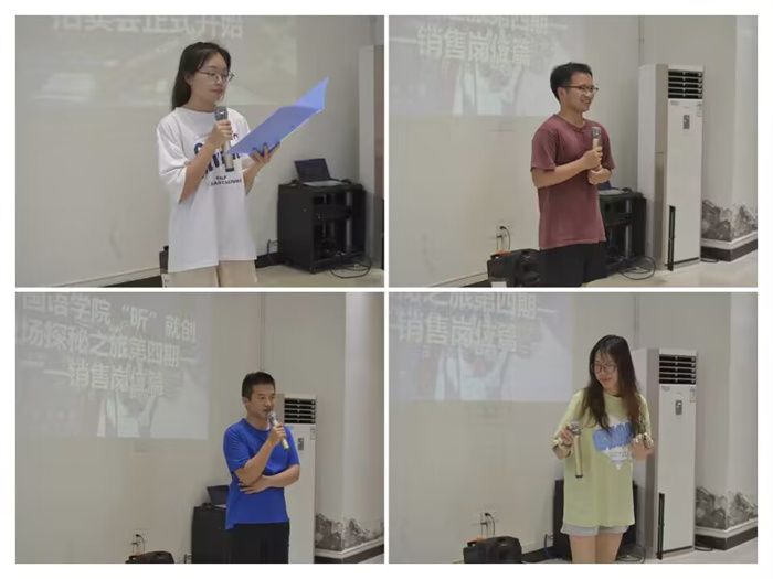 2023年5月31日,外国语学院“昕”就创——职场探秘之旅第四期销售岗位篇,在天渠玻璃房圆满举行。此次活动外国语学院就业助理团以打破学生对于销售岗位的信息壁垒,培养学生的职业素养,以及更好地将理论与实践融会贯通,更好地适应未来的工作为宗旨。让同学们通过有关销售知识的活动体验,更深入了解销售岗位,进而让学生辐射思维,灵活地找到自己心仪且合适的职业。