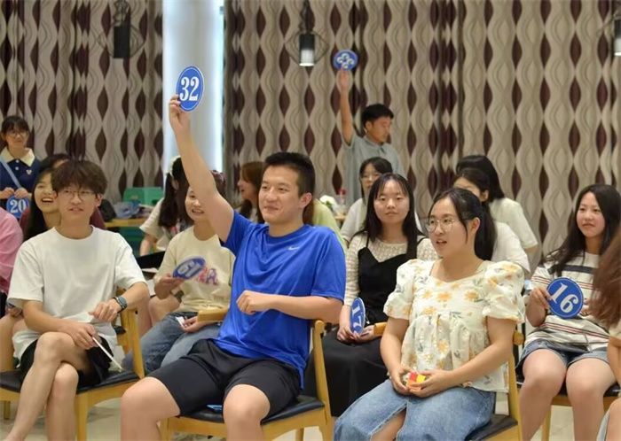 砺戈秣马,踔厉奋发。外国语学院“昕”就创——职场探秘之旅第四期销售岗位篇,“拍案叫绝,一锤定音”拍卖会正式拉开序幕。在活动环节,参与者们参加各个职场销售小游戏,以此赢得不同数额的拍卖券,为后续拍卖会活动准备充足的“拍卖资金”。参与者们彼此交谈,畅所欲言,介绍着自己的理想职业以及对销售职业的定义。在他们身上可以看到的,是坚毅的目光,是坚定的信念,也是对未来的美好憧憬。他们的理想职业,有鸿鹄之志,也有简单追求,现场的同学们也都对职业规划做出了深度思考及长远规划。