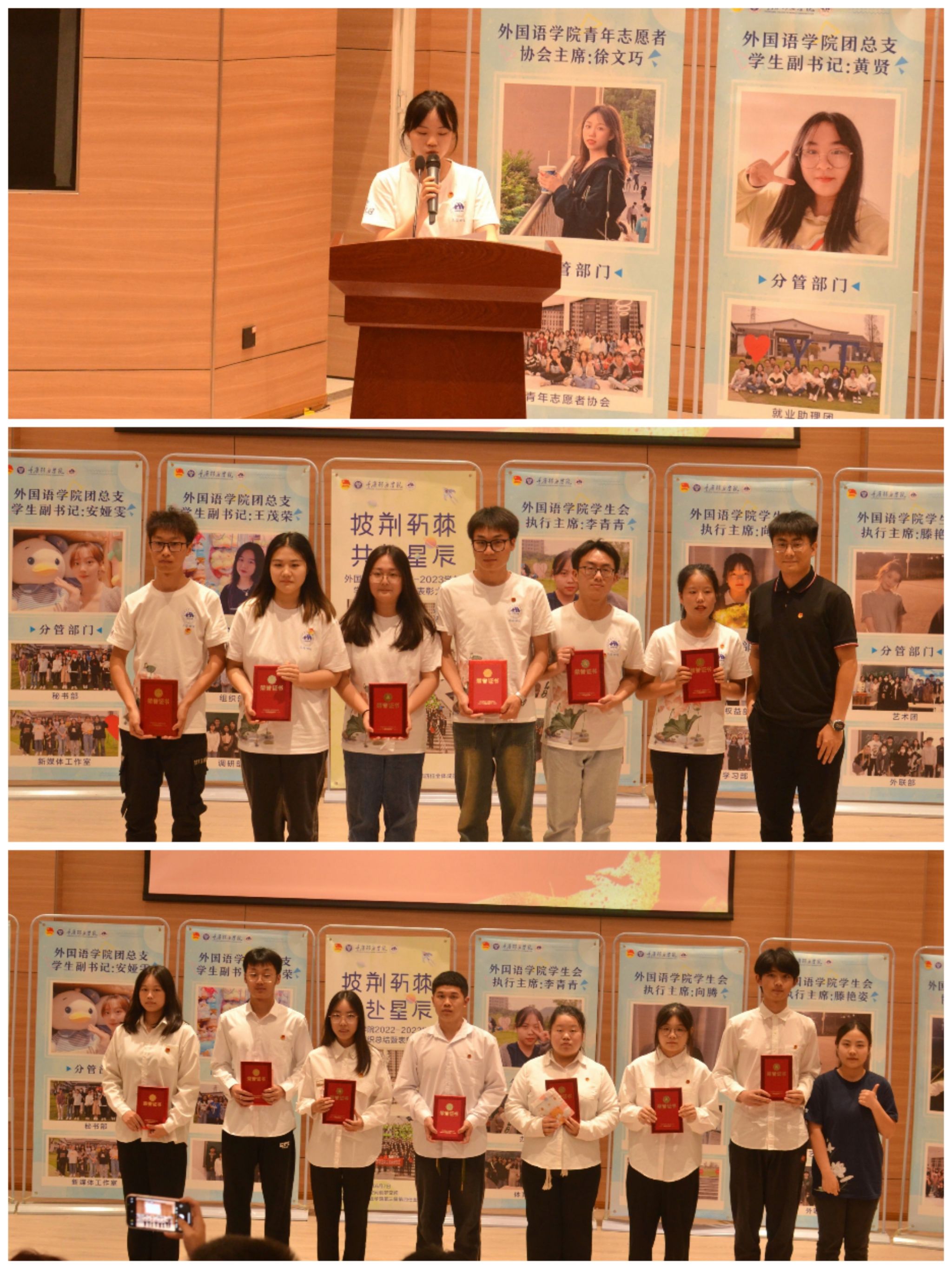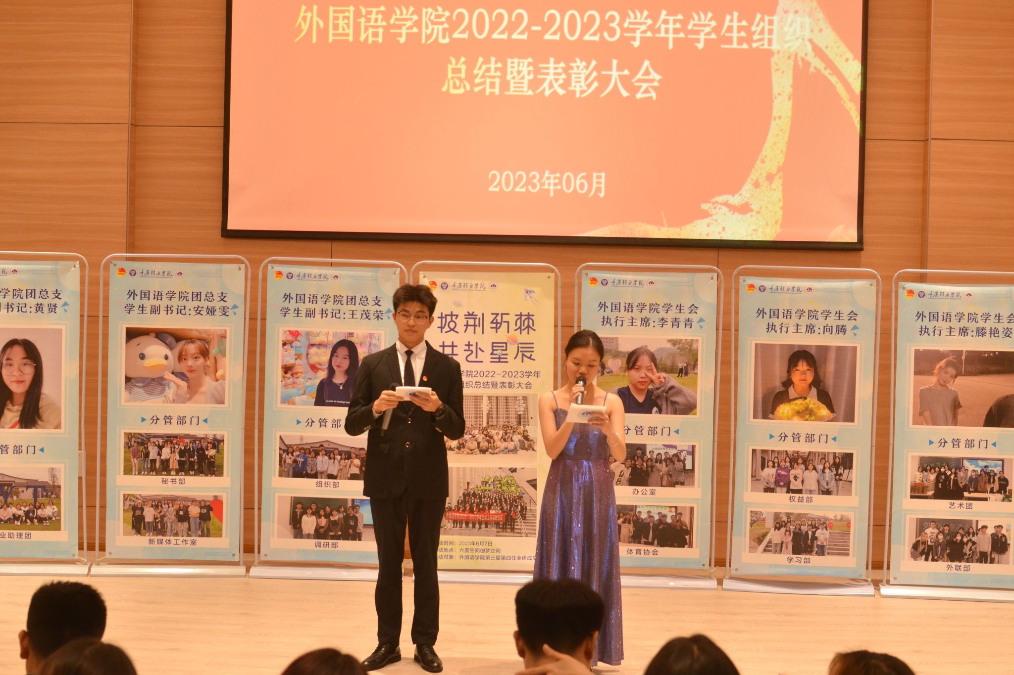 蝉鸣愈燥,夏至忽至。转眼间外国语学院第三届第四任学生组织工作即将进入尾声,回首过往,一切都是那么的弥足珍贵。回顾学生组织完满风采,画三届四任完满画卷,为将本学年学生组织工作画上圆满句号,表彰出色学生组织成员、部门,特外国语学院团总支于2023年6月7日16:00,在六度空间·创梦空间开展“披荆斩棘,共赴星辰”外国语学院2022-2023学年学生组织总结暨表彰大会。外国语学院第三届第四任学生组织全体成员参与。