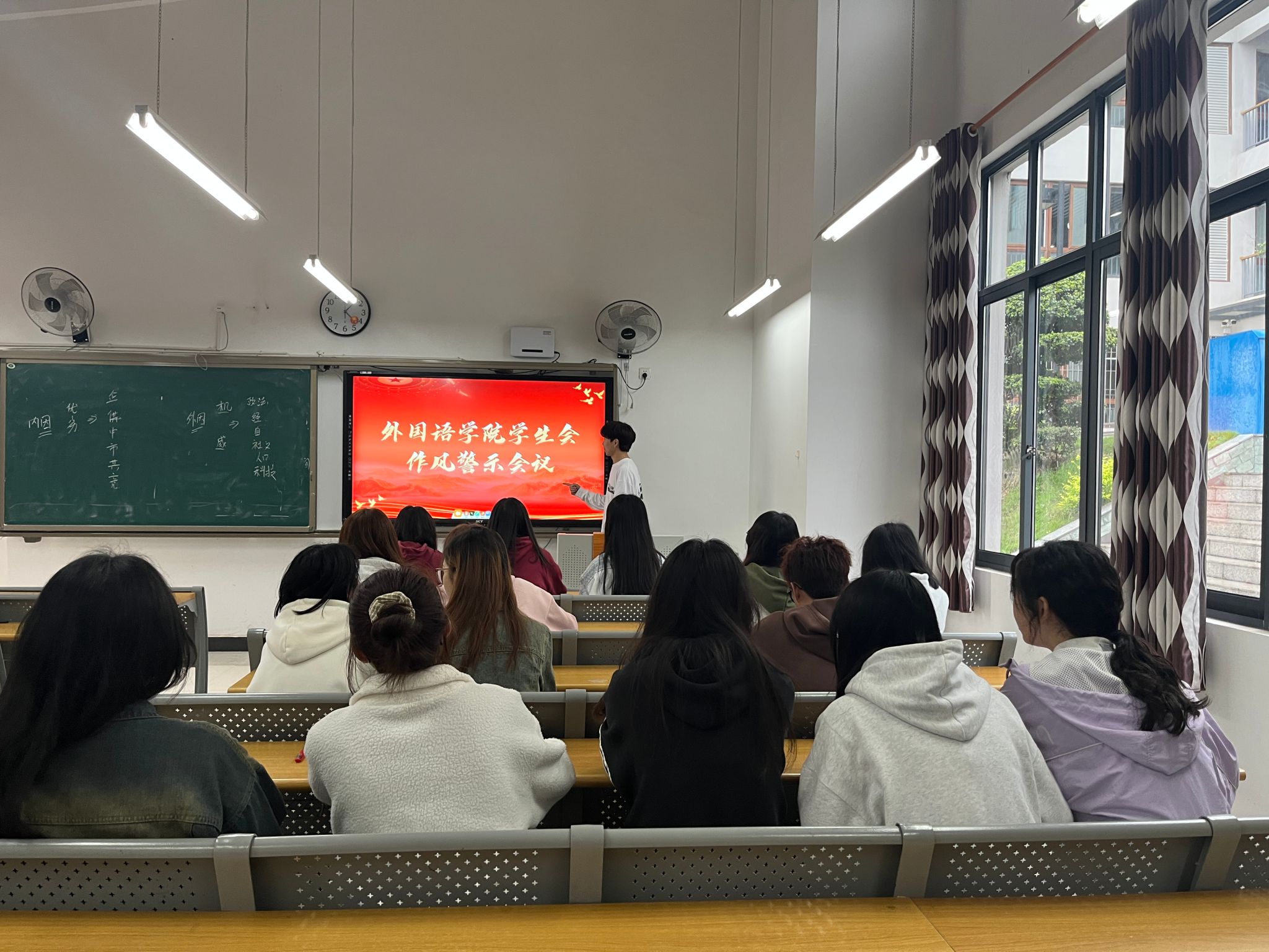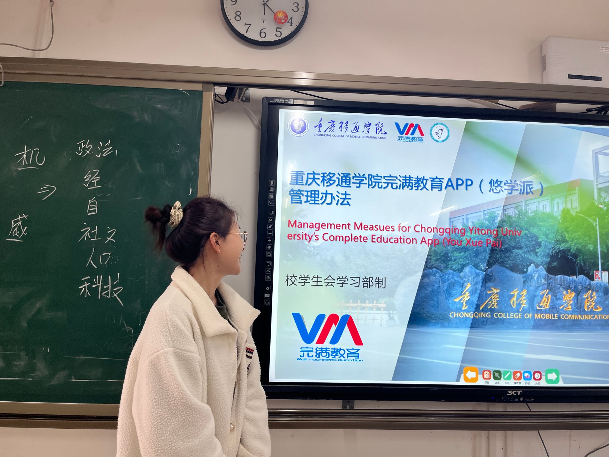 为进一步提升外国语学院各位干部对悠学派的使用技能和管理能力,帮助干部们更好地掌握悠学派APP的使用和管理,确保我校完满教育模式的正常运行,同时给同学们提供更便捷、高效的使用体验,外国语学院特于2023年10月20日在天渠104教室举办外国语学院干部悠学派使用管理规则解读培训会。