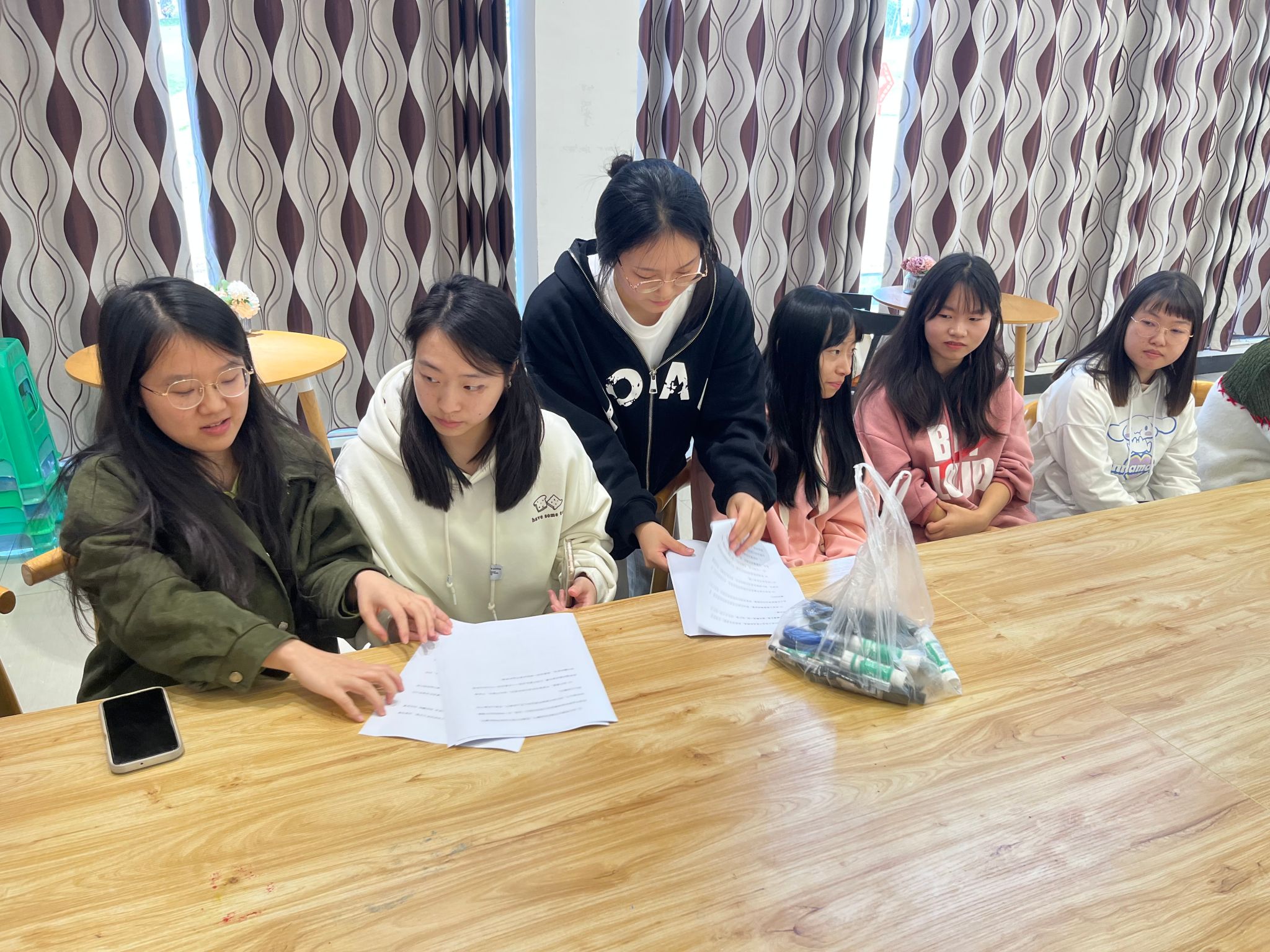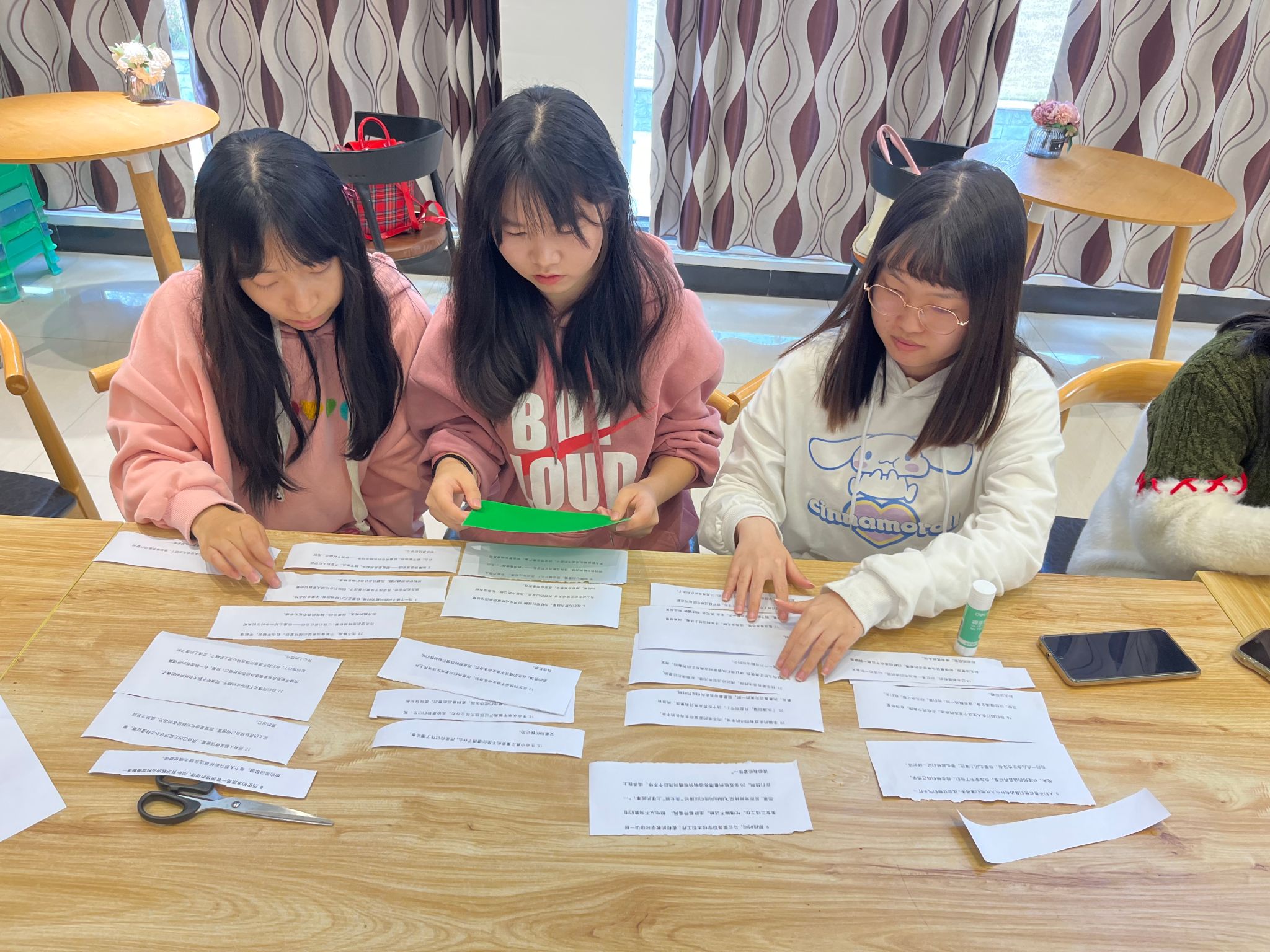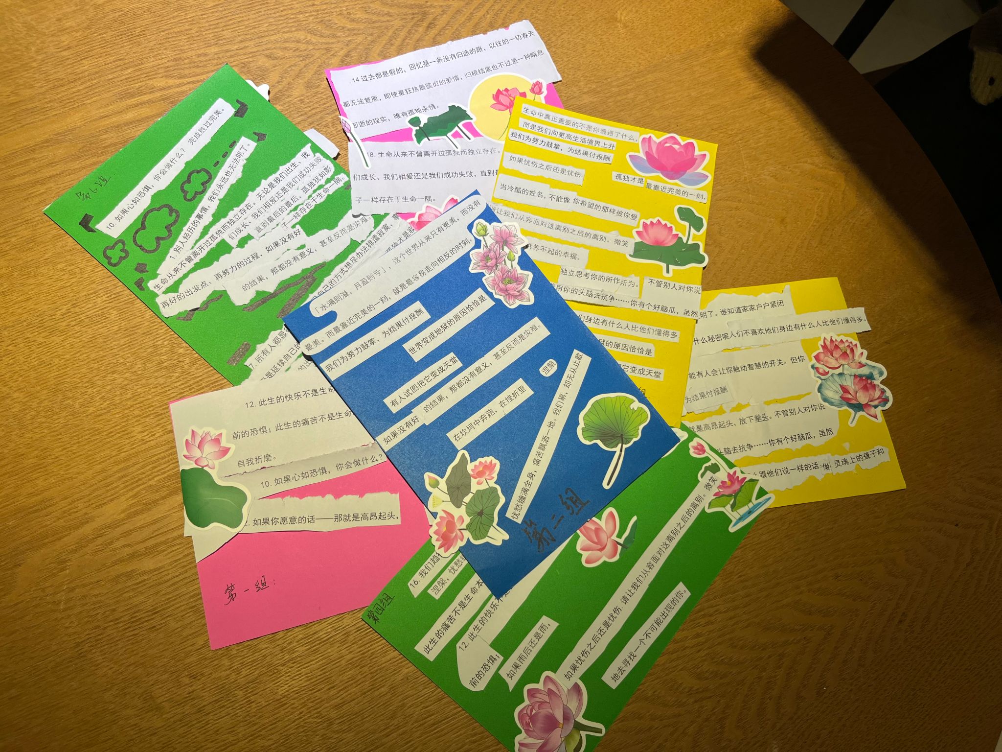 入题三分,与友作伴。经过“观线索,猜书名”的热身,本场活动来到第二环节。同学们根据所提供的乱序诗词或句子,大开脑洞,将其拼接在一起,创造出新的段落。“拼贴诗”活动打破传统的诗词创作模式,让同学们在此项比赛中尽情发挥着他们的创造力和想象力,评委们通过对文章的还原度和创新度进行评判,每个队伍、每位选手的表现都异常精彩。