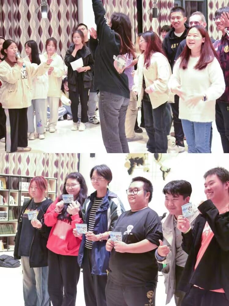 “你演我猜”的热身结束,本次活动迎来最后一场游戏——桃花朵朵开。参与游戏的同学们围成圆圈并伴随着音乐的旋律绕圈走动,男生为半朵花,女生为一朵花。Clive说几朵桃花开时,大家迅速寻找正确的搭档站成一团,使自己团队的数字相加等于Clive的报数。此环节进行时,现场呐喊、欢呼声交织一片,热闹非凡。