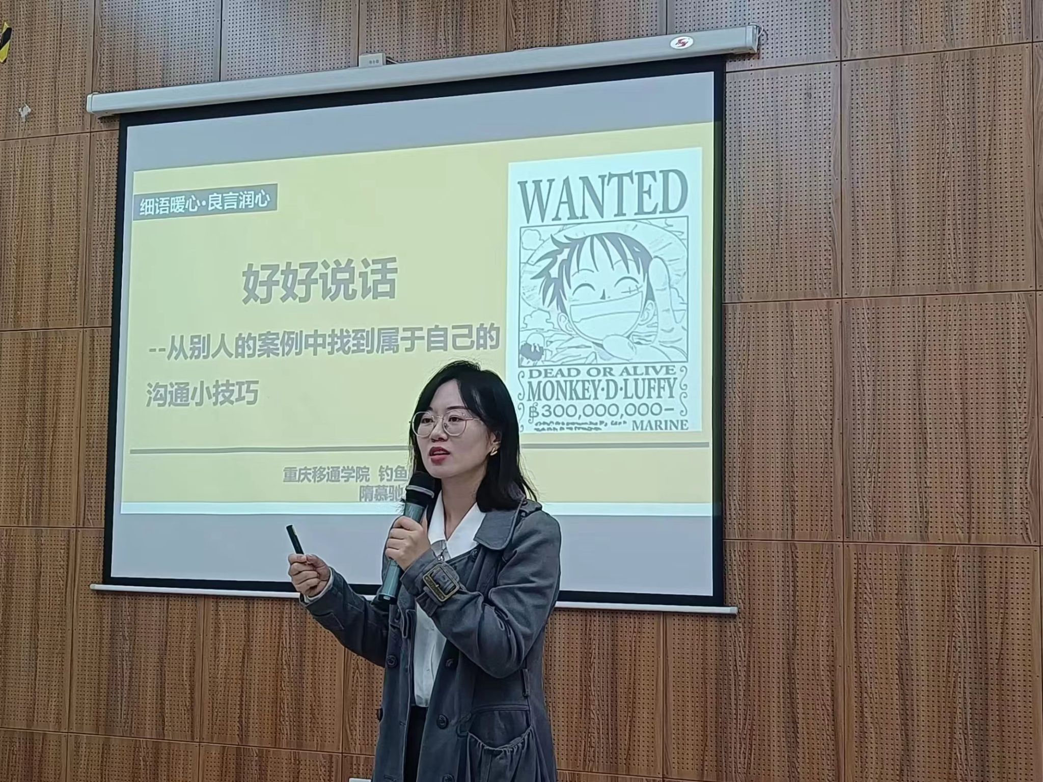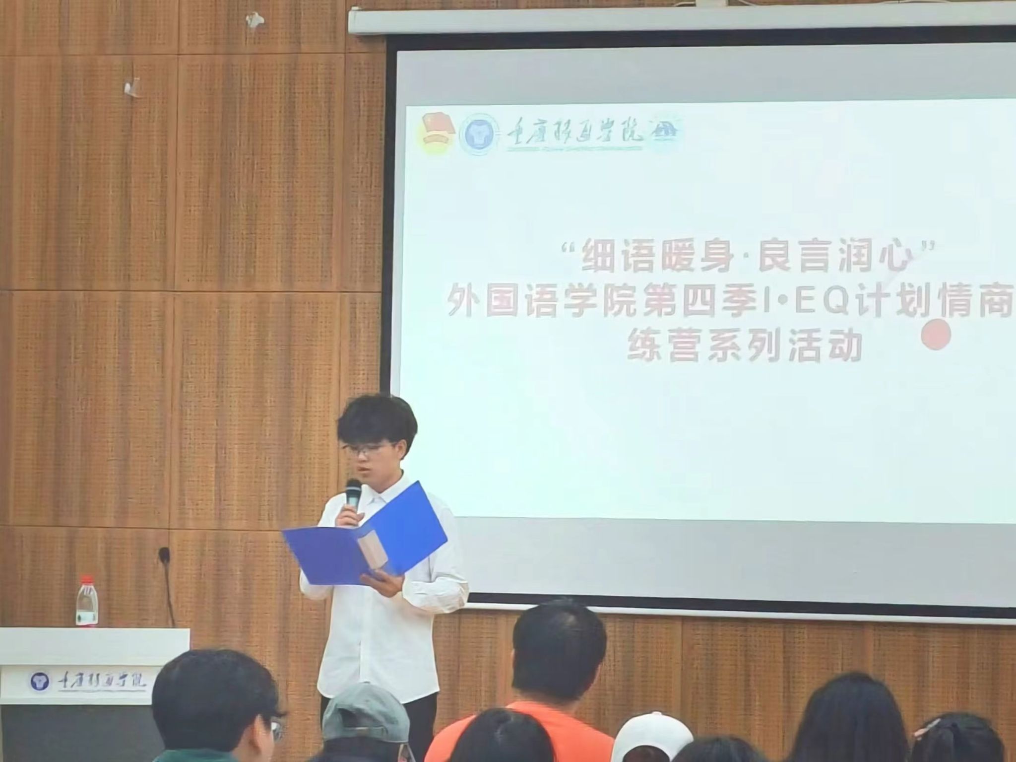 人与人之间的沟通需要多一点善言,少一些恶语,身边的世界才能变得更加美丽,在沟通之前没有必然的结果,沟通就是化偶然未必然。为提升干部干事在与他人沟通领域的能力,更好地管理情绪,通过与他人的交流提高沟通能力和人际交往能力。特外国语学院团总支组织部于10月26日中午12:30,在天渠111报告厅成功举办“细语暖身·良言润心”外国语学院第四季I·EQ计划情商训练营系列活动。本次活动有幸邀请到鱼城书院专职教师隋慕驰老师作为主讲人。