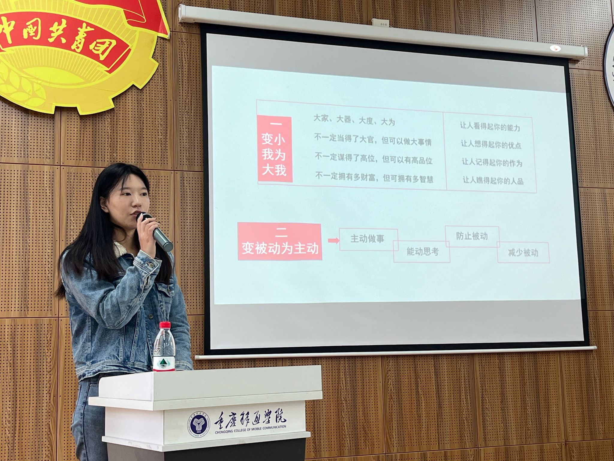 语言的目的是使人一看就明白,一听就记住,语言的唯一标准是准确。为让青马学员们在语言表达能力方面更加得心应手,提升个人的协调能力、组织能力,消除自我认知矛盾,让语言的长河生生不息。特外国语学院团总支于11月16日中午12:30,在天渠111报告厅开展“内通外达,感受语言的魅力”外国语学院第五期青马工程第二次理论培训,本次培训有幸邀请到校团委综合事务中心教师刘明璐老师作为本次培训的主讲人。