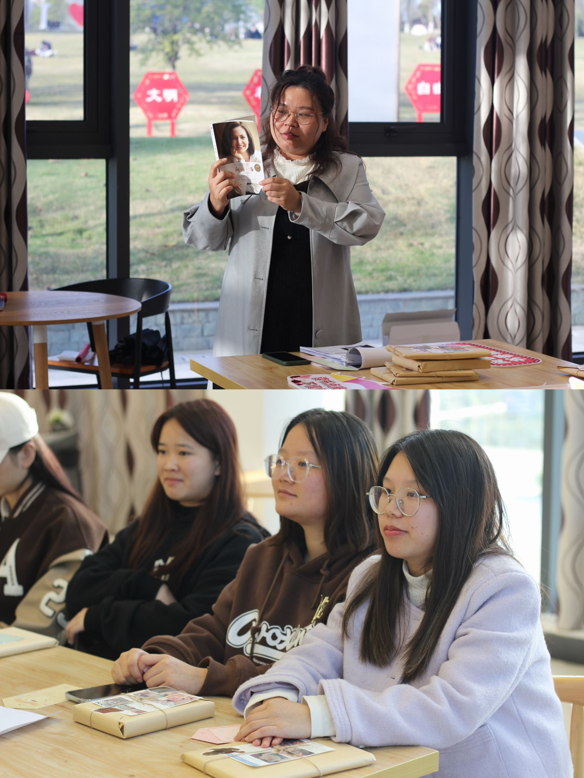 “腹有诗书气自华”,随着电子产品的普及,纸质书籍似乎逐渐脱离大众视野。为了让同学们投入纸质阅读中,丰富精神文化生活,2021级英语2班的同学与异科导师王广川老师开展了一场有趣的读书会。活动开始,英语2班的同学收集了每位同学在图书馆并推荐的书,将他们包装成一个个“盲盒”,大家依次领取自己的盲盒书籍与小书签。在王广川老师推荐了大咖书籍《向前一步走》后,同学们开始拆自己的盲盒并进行自主阅读,同时写下自己的阅读感受。在阅读结束后,同学们也分享了自己的所感所悟。