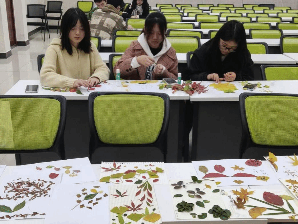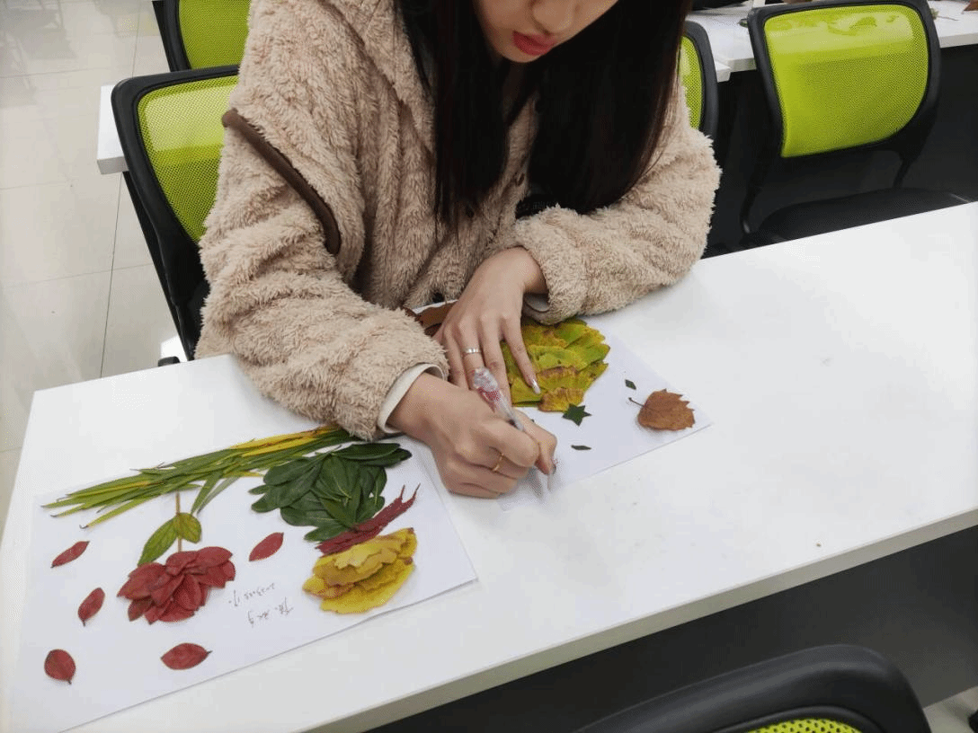 在活动后期收集作品时一切都按部就班地进行着,同学们陆陆续续将制作好的作品交给工作人员,并在作品上署上自己的姓名。在离开前看着自己的创作,心里肯定是自豪与成就。通过这些作品我们也看到了同学们无限的创造力,一幅又一幅精巧美丽的作品映入眼帘,这些即将成为养料的落叶却在同学们的巧手上获得了重生。这次活动充分发挥了同学们的创新创造意识,更让他们学会了利用小事物缓解压力,获得快乐。枯燥的校园生活因同学们的热情而活跃起来,同学们也借此释放了自己积蓄的压力。