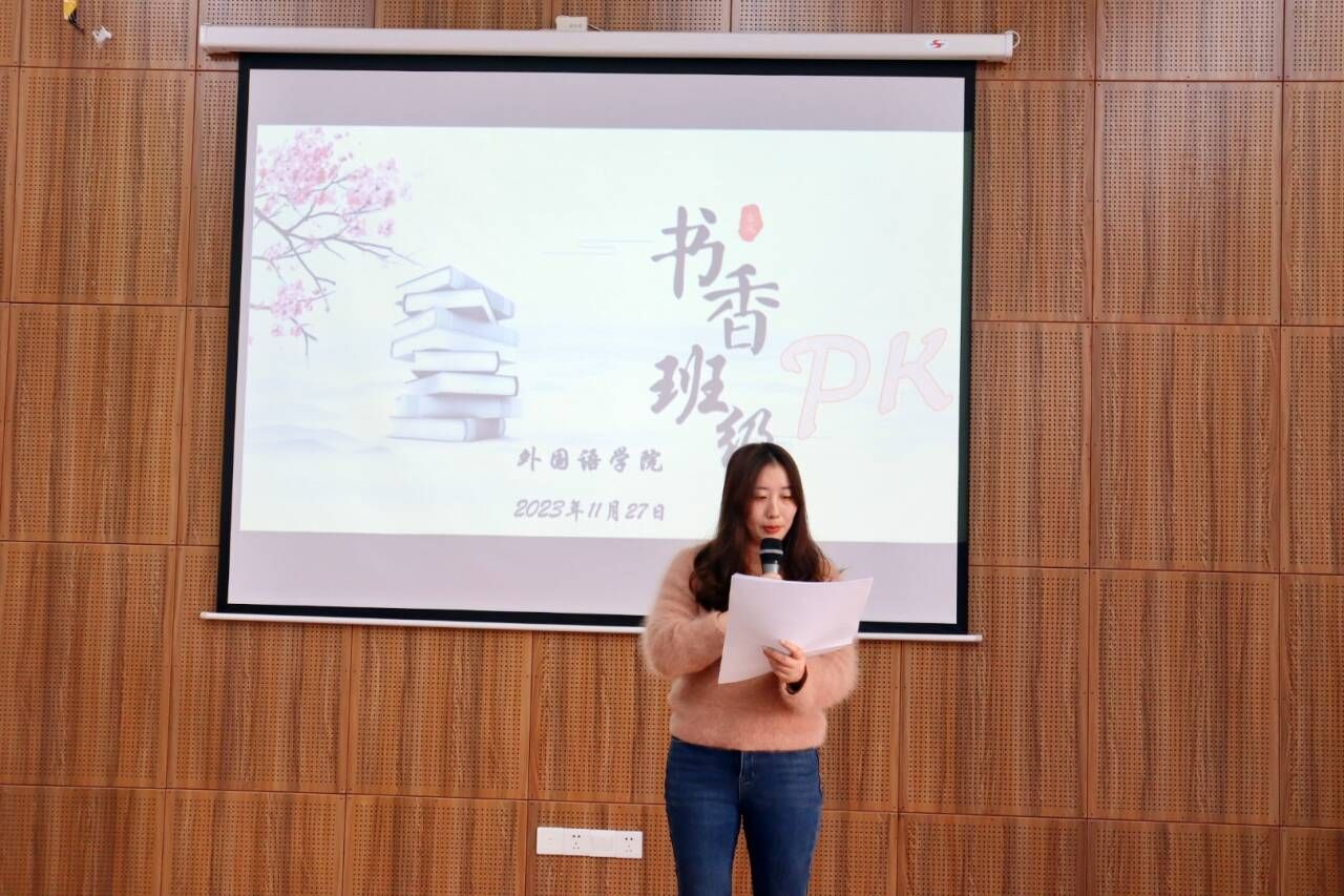 读万卷书,行万里路。书籍是最珍贵的宝藏,阅读更是有无穷无尽的魅力,值得为之探索。为提高学生们的文化素养,培养学生课外阅读的能力,在校园内形成热爱读书的良好风气,不断提升我校的学习风采,建设书香校园。外国语学院特于2023年11月27日开展书香班级PK赛,进行院内初赛选拔。