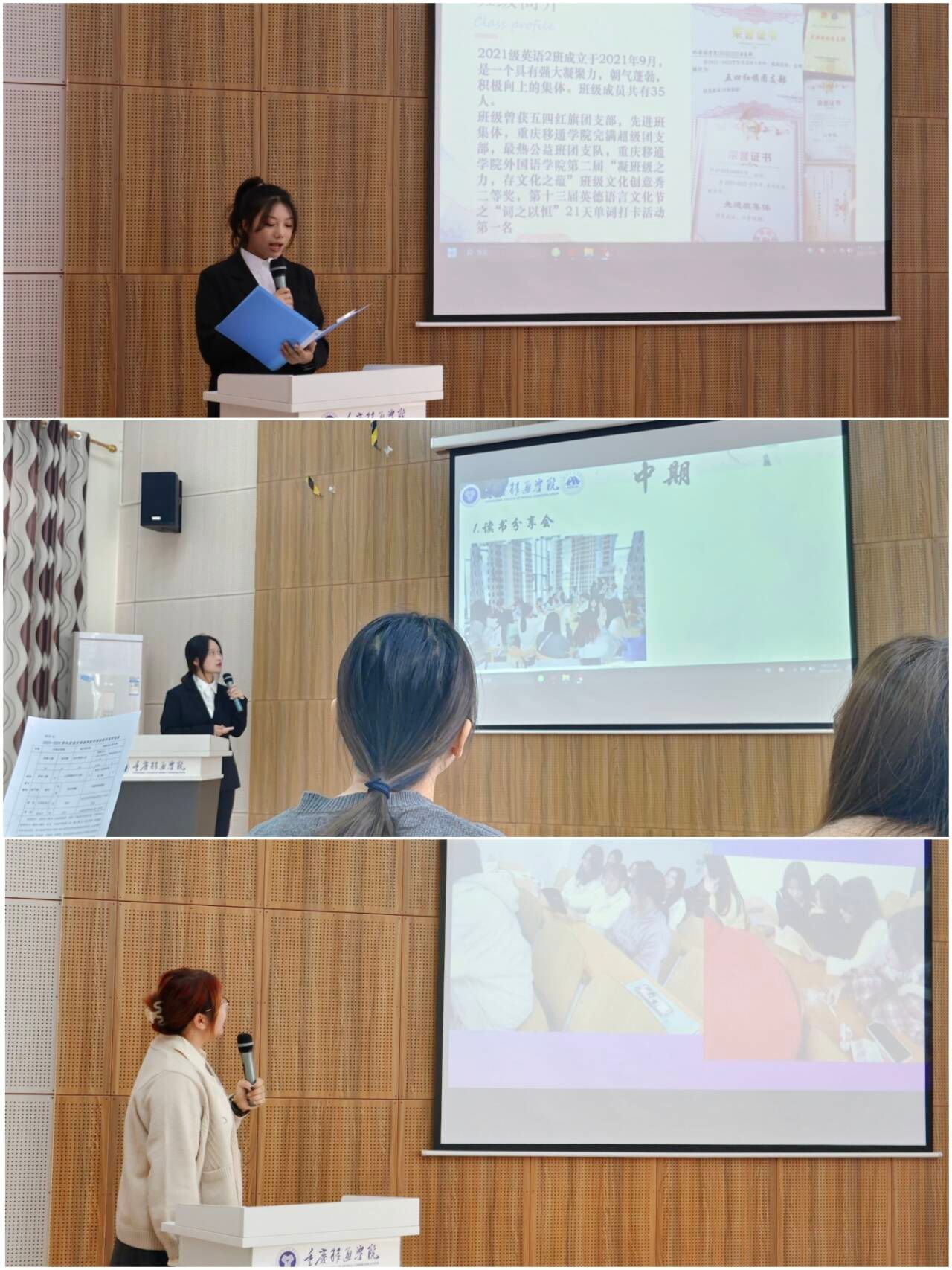 随即,PK赛进入第二环节—书香班级风采展示。各班代表按特定顺序依次上台进行书香班级风采展示,将其以PPT或视频等多种形式呈现,并对此进行汇报和答辩。