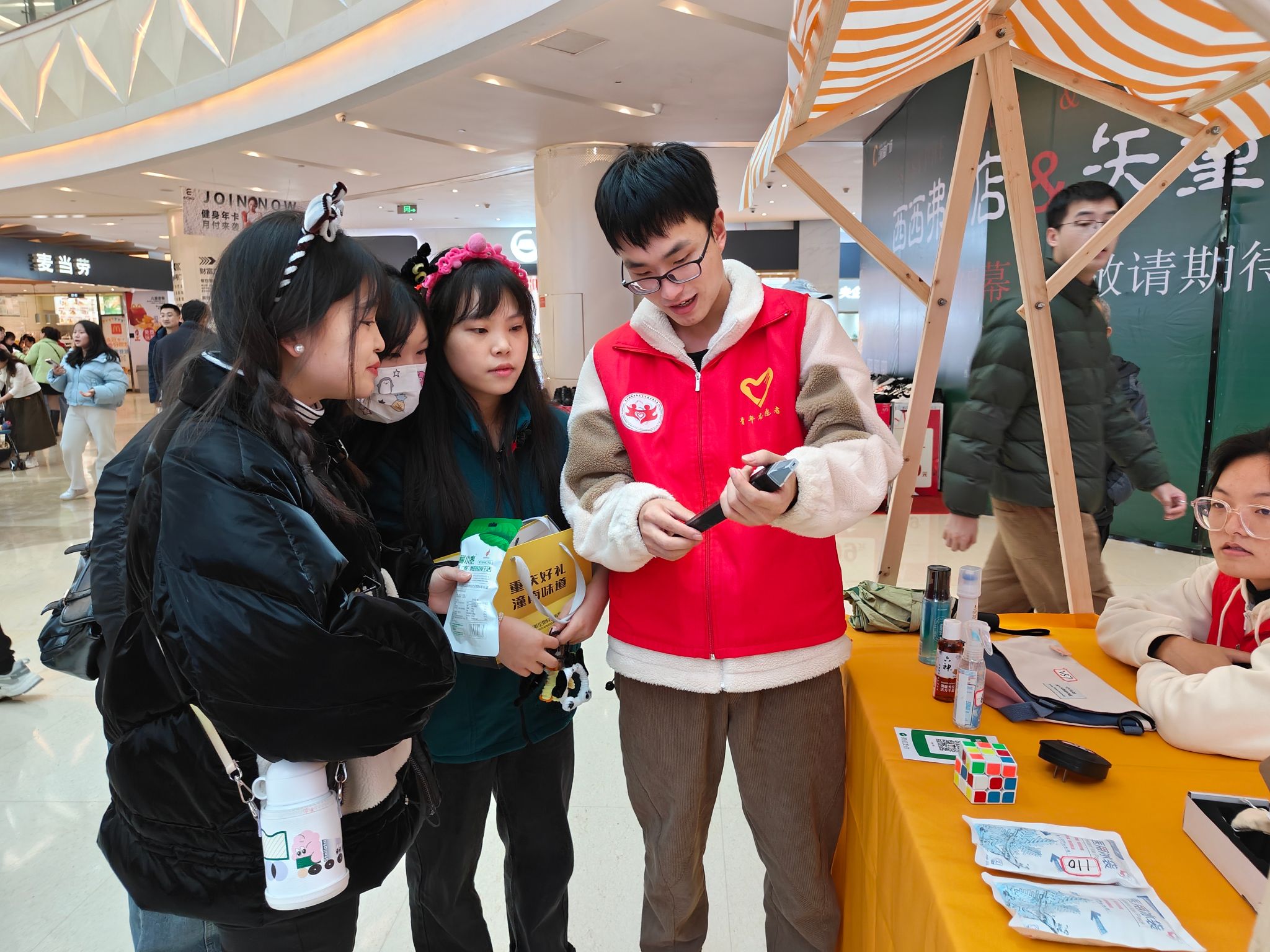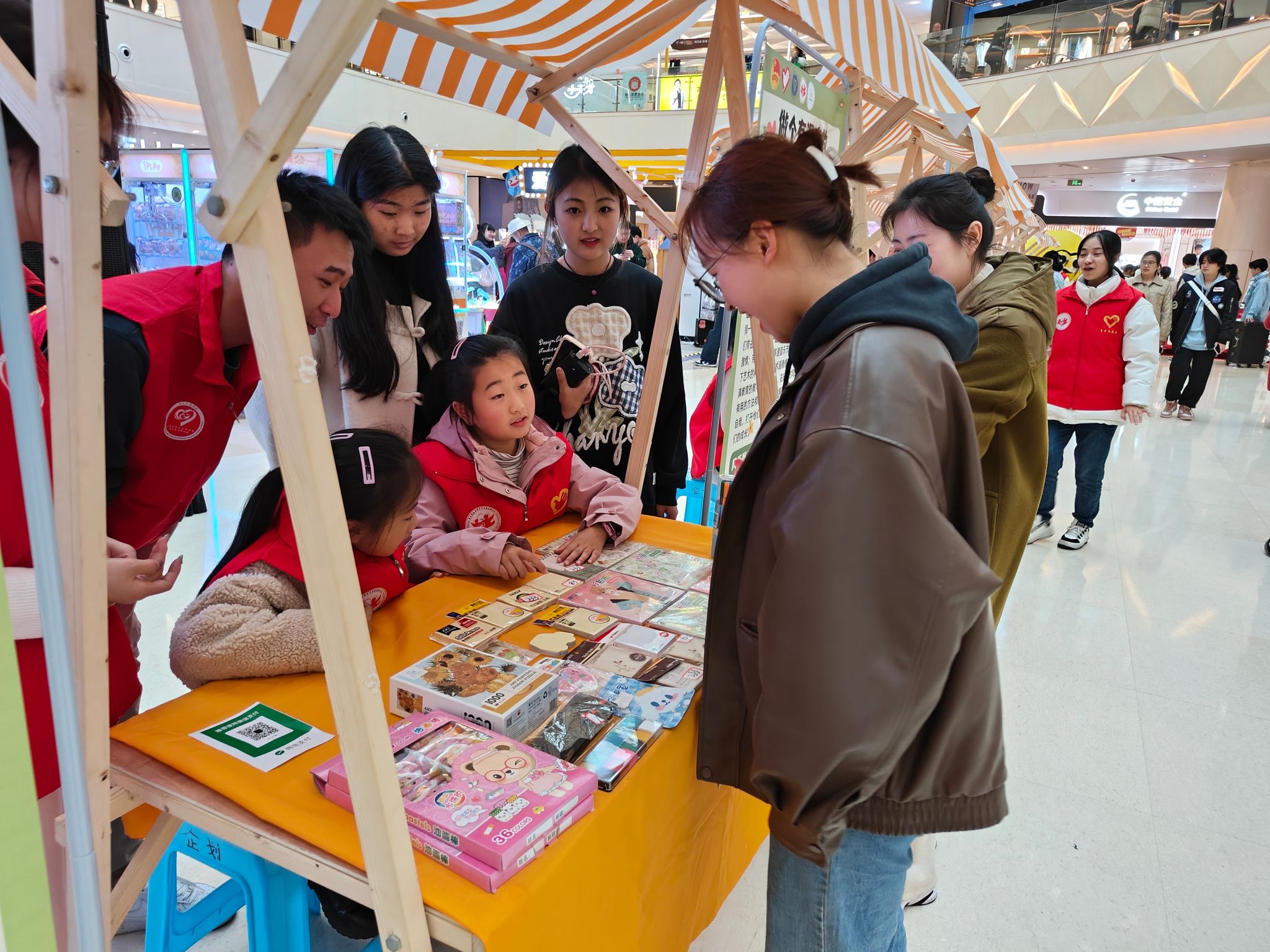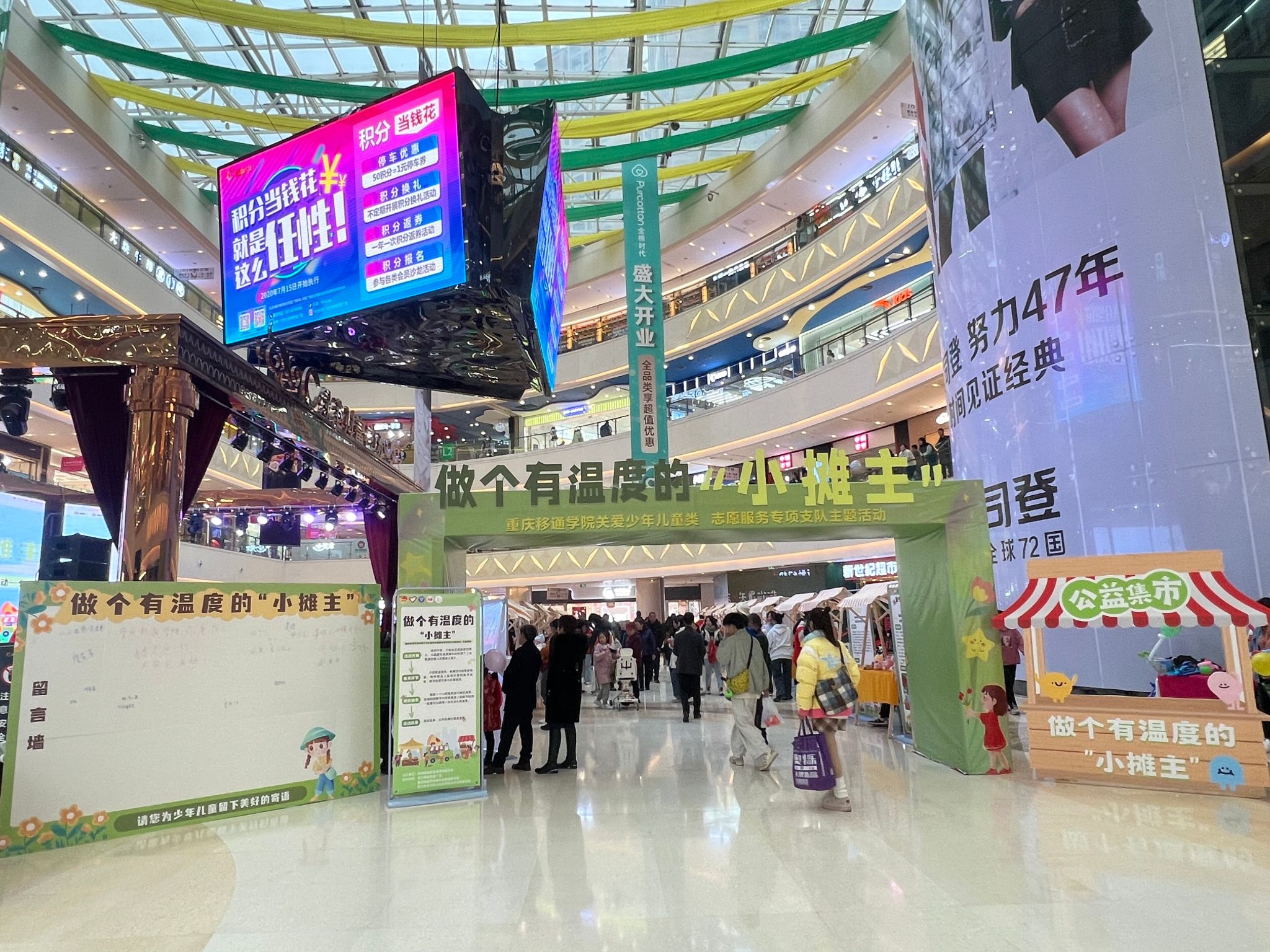 “走过路过不要错过”“有趣的玩具,大家快来看一看”“笔记本小的3元,大的8元”……一群平均年龄不超过10岁的“小老板”的吆喝声吸引了大量的行人驻足围观,在小朋友们稚嫩的叫卖声中,合川市民们体验了一场特殊的“赶集”。12月3日14:30,由共青团重庆移通学院委员会、合阳城街道办事处联合主办,重庆移通学院青年志愿者联合会、外国语学院青年志愿者协会承办,合川绿港财富广场协办的重庆移通学院关爱少年儿童类志愿服务专项支队主题活动—“做个有温度的小摊主”公益地摊集市在合川绿港财富广场火热开市!