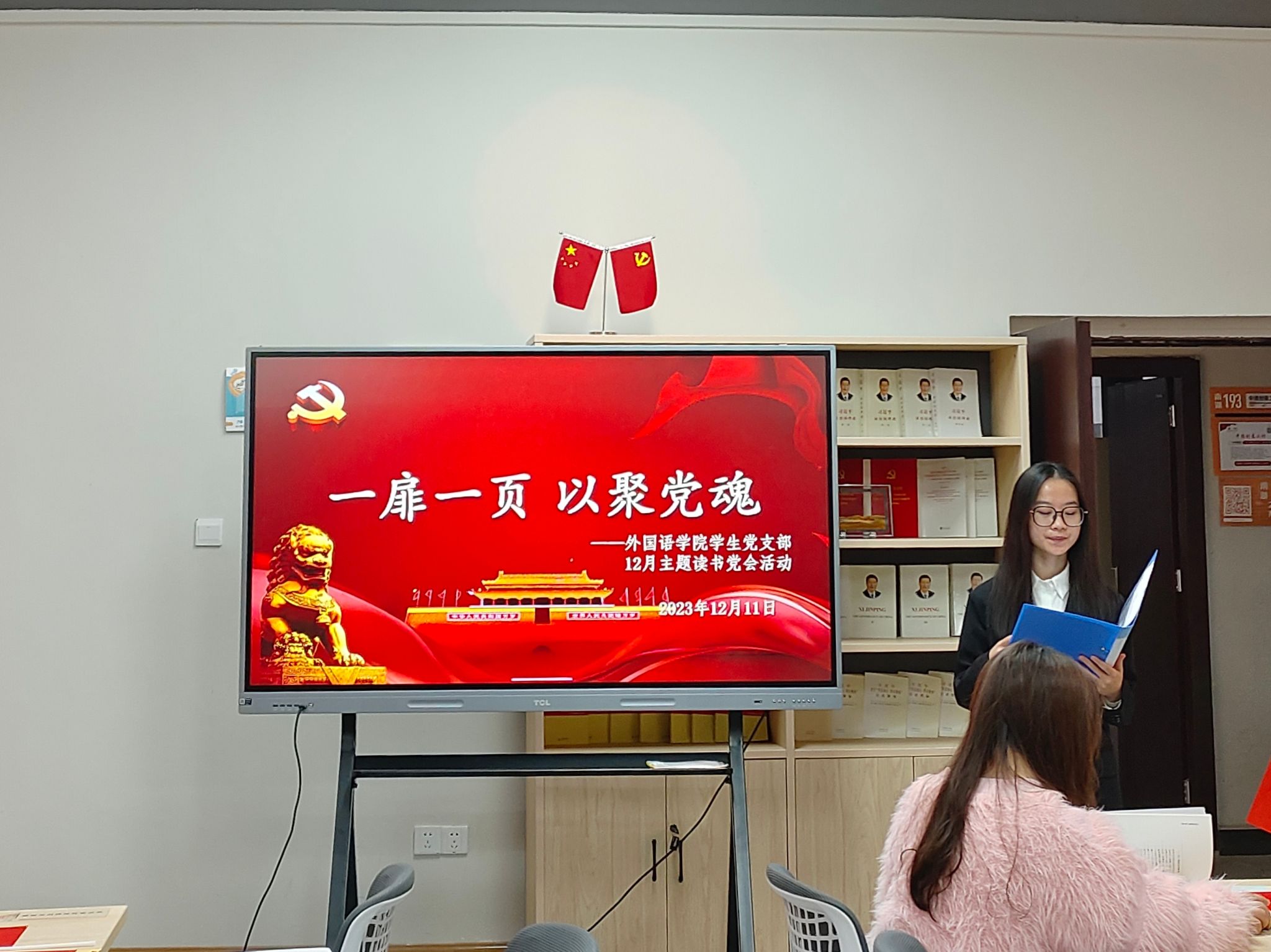 “以史为镜,可以知兴替”,党的百年历史是最生动、最有说服力的教科书。2023年12月11日中午12:30,外国语学院学生党支部在南湖书院108党团活动室开展以 “一扉一页,以聚党魂”为主题的12月读书会主题党日活动,旨在通过共同学习、交流心得,提高党员同志们的理论储备和政治素养。