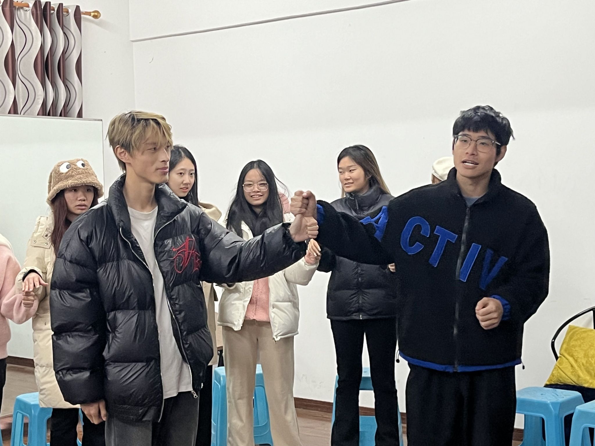 打破社交壁垒,从互动开始,正视每一种情绪,才能自愈自己,为助力青马学员在学习生活与学生组织工作中合理调节心绪,找到生活的乐趣与状态,特外国语学院团总支于12月11日中午12:30,在荷悦排练厅开展“心若向阳,无畏悲伤”外国语学院第五期青马工程第三次理论培训。本次培训,有幸邀请晴天心理站的老师们为青马学员们带来关于轻松情绪,放飞心灵的团辅培训。
