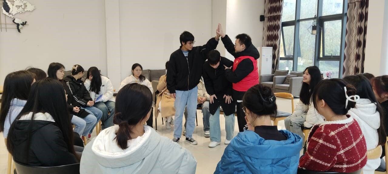 “轻舟已过万重山”。活动开始前,工作人员详细讲解了游戏规则,帮助同学们更好地了解熟悉活动。在游戏环节中,同学们自由组队,在询问加入团队时,眼神中的忐忑和紧张逐渐消失,鱼不离水,雁不离群。同学们团结一致,在游戏中大放异彩,周身散发的自信让内心的那点不确定变得明亮。在游戏过程中,同学们默契配合,提升了自我。赢了游戏的同学,激动拥抱。输了游戏的同学也并没有自怨自艾,而是积极的参与下一环节。同学们通过倾诉讲出自己的困惑和烦恼,勇气和友谊支持着他们前行。