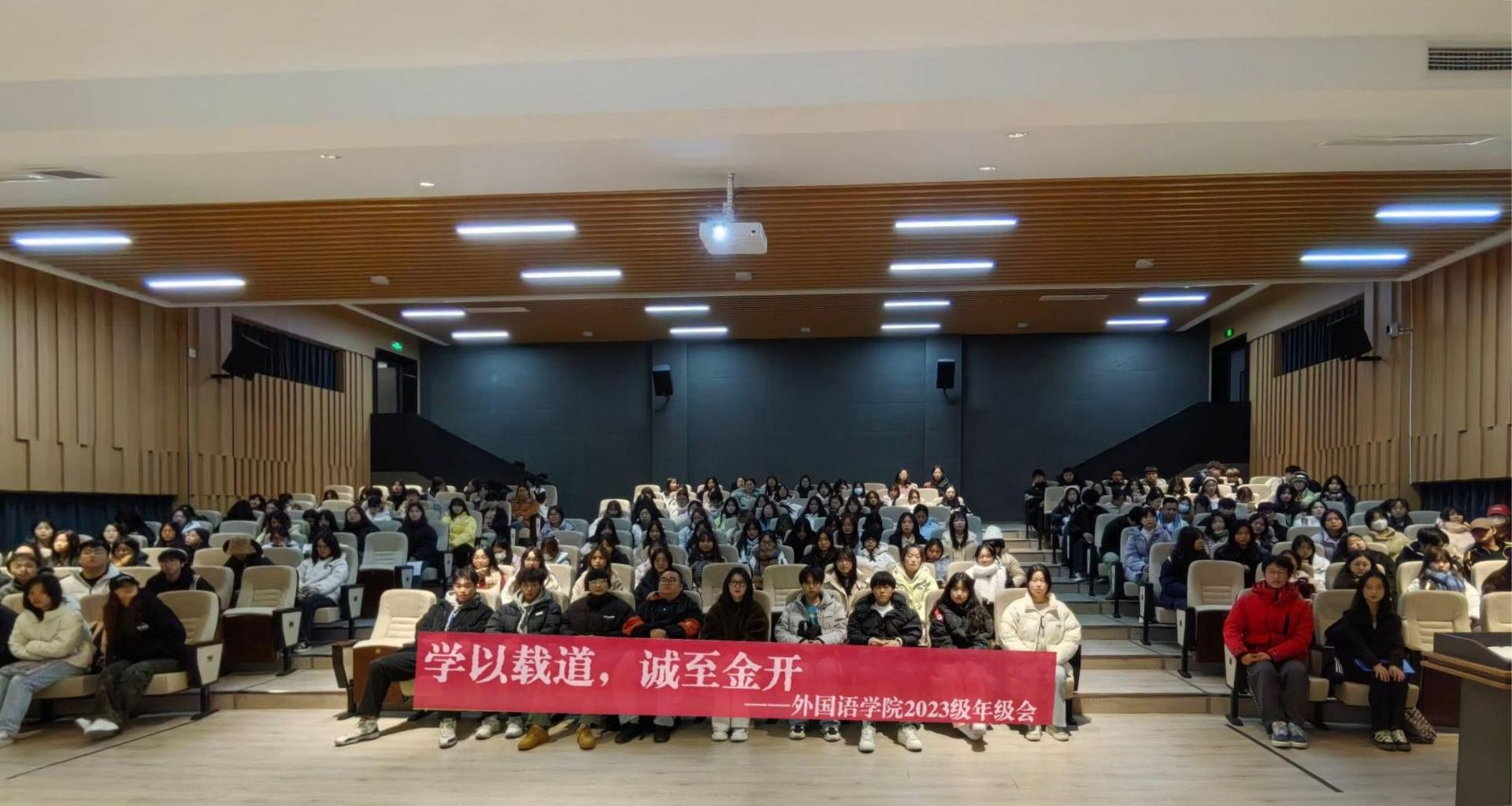 “人而无信,不知其可也”,为进一步落实我校“完满教育”育人理念,更好培养我校学生诚信考试的道德素质,12月15日,由外国语学院2023级翻译、英语1-6班举办的“学以载道,诚至金开”为主题的年级会在六度空间无限多功能厅成功举办。