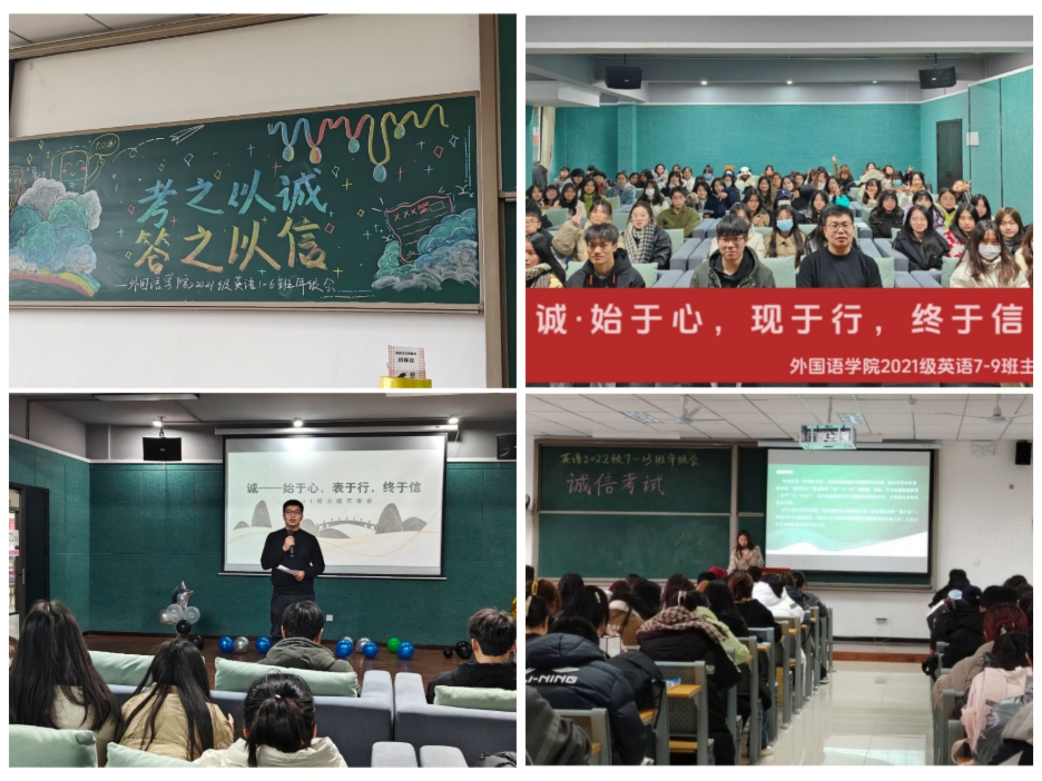 临近期末,各种考试接踵而至。为进一步提升大学生素质,塑造良好的青年形象,各年级举办了形式多样的诚信考试主题年级会。希望通过本次活动能让同学们增强诚信意识,提高道德素质,在考试中做到诚信应考,以信树人,考出自己的风采。